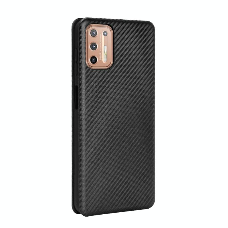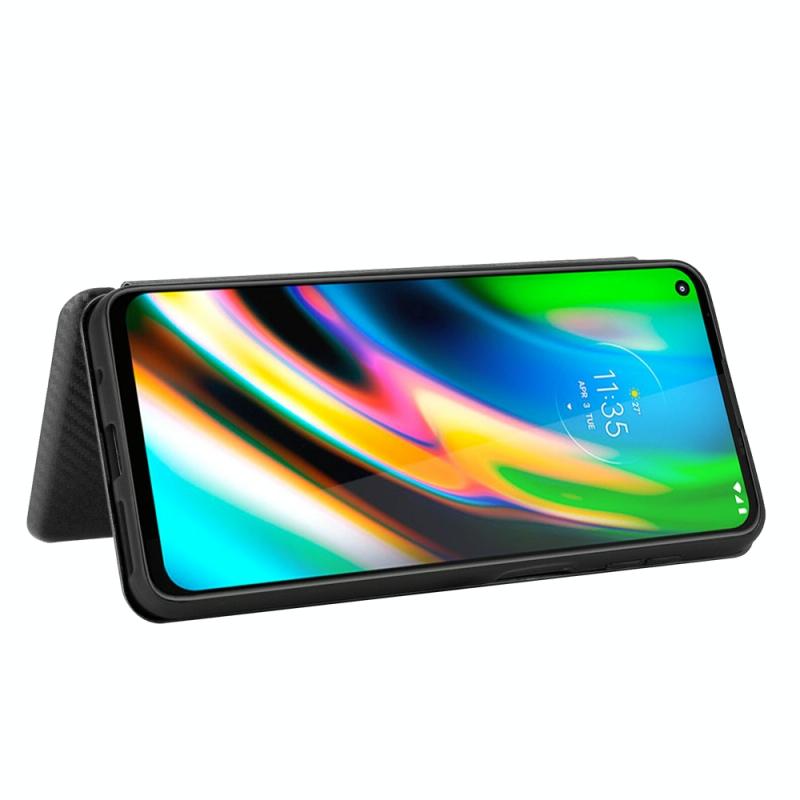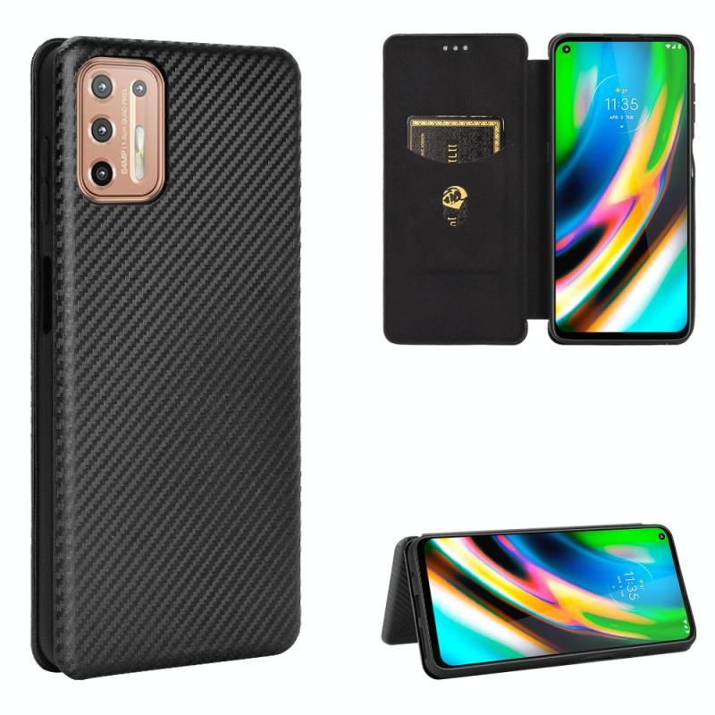 For Motorola Moto G9 Plus Carbon Fiber Texture Horizontal Flip TPU + PC + PU Leather Case with Card Slot(Black)
