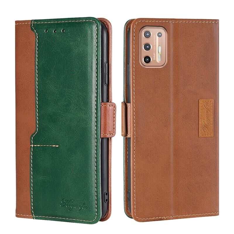 Για Motorola Moto G9 Plus αντίθεση χρώμα πλευρά πόρπη δερμάτινη θήκη τηλεφώνου υπόθεση (ανοιχτό καφέ + πράσινο)