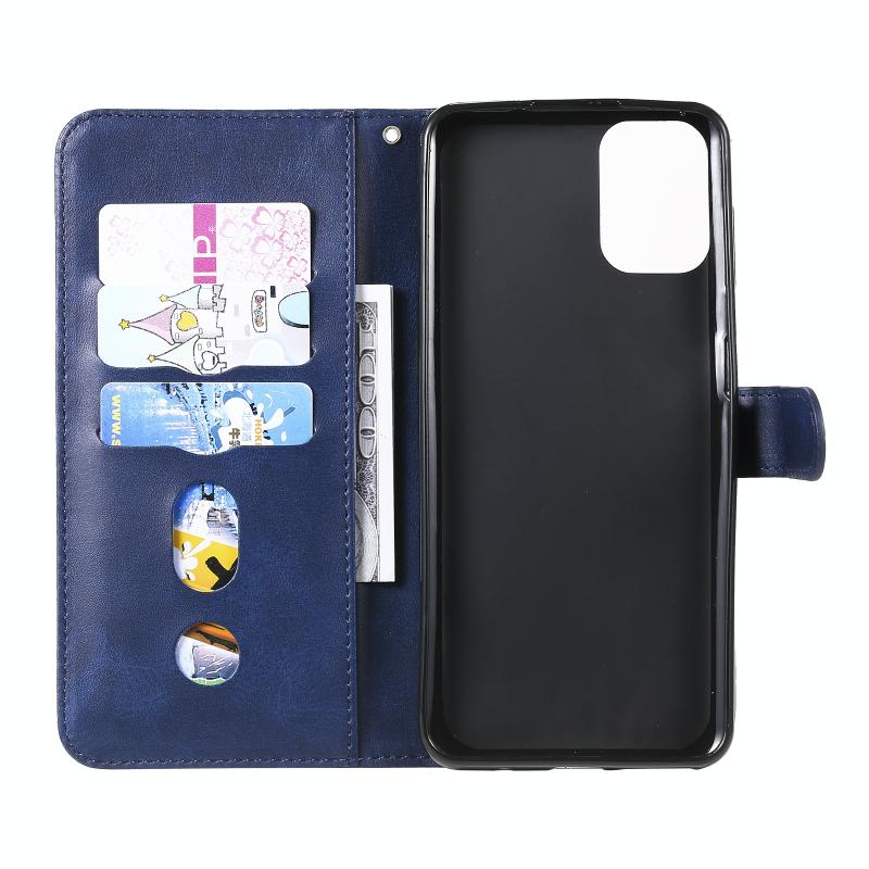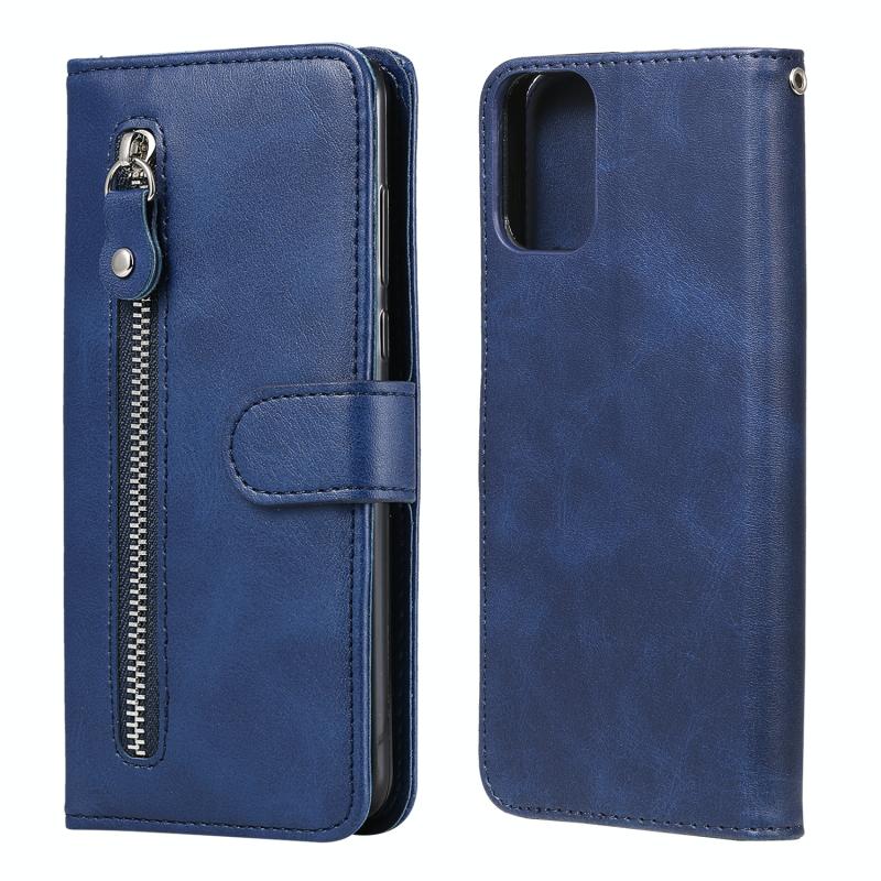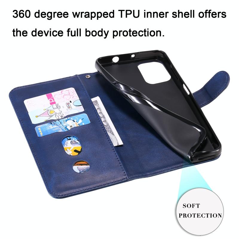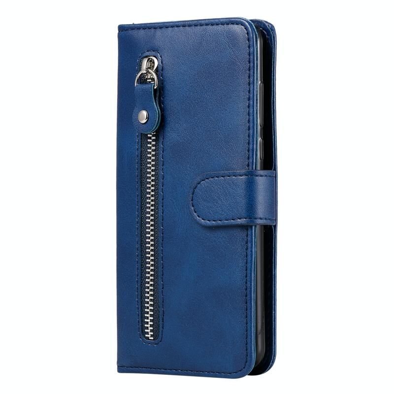 Θήκη δέρματος οριζόντιας αναδίπλωσης με φερμουάρ και υφή μοσχαριού για Motorola Moto G9 Plus, με βάση & υποδοχές καρτών & πορτοφόλι (Κόκκινο)