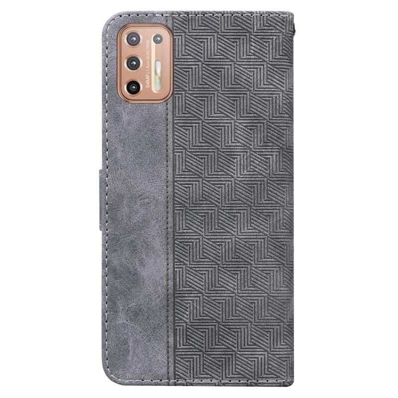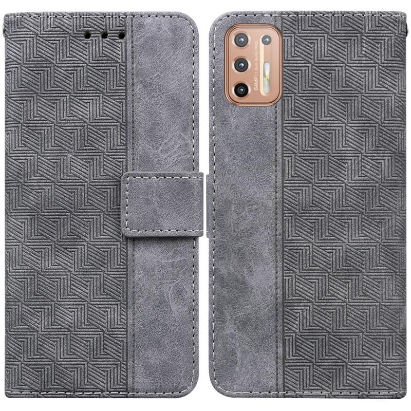 Για Motorola Moto G9 Plus Γεωμετρικό ανάγλυφο δέρμα θήκη τηλεφώνου (γκρι)