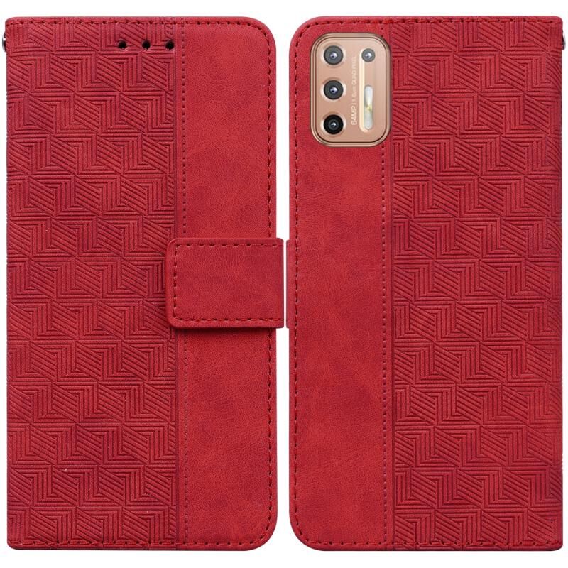 Για Motorola Moto G9 Plus Γεωμετρική ανάγλυφη δερμάτινη θήκη τηλεφώνου (Κόκκινο)