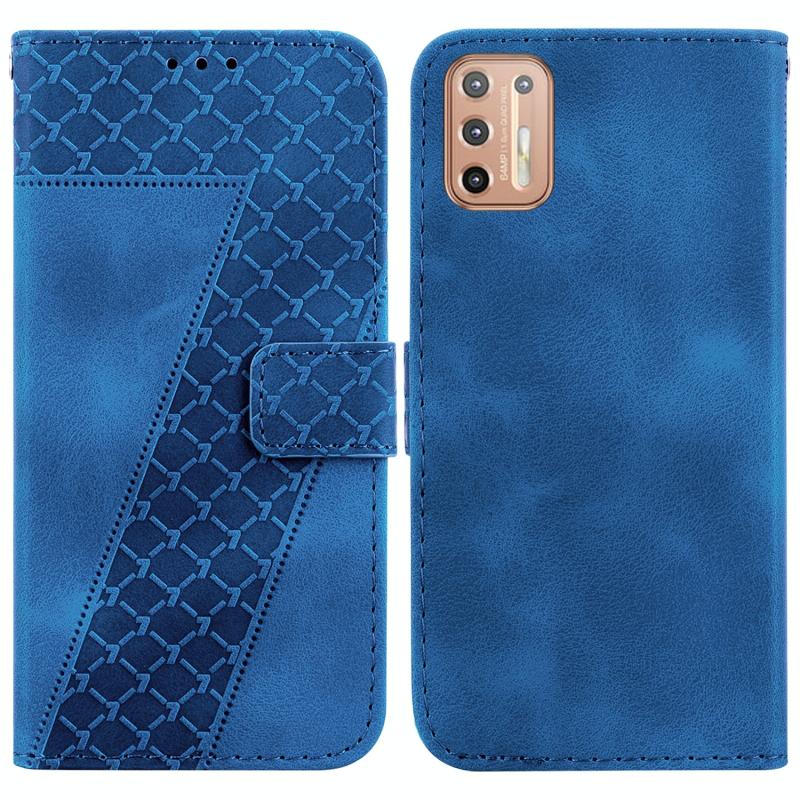 For Motorola Moto G9 Plus Seven-shaped Embossed Leather Phone Case(Blue)