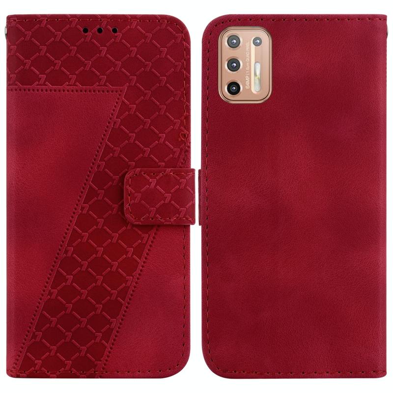 For Motorola Moto G9 Plus Seven-shaped Embossed Leather Phone Case(Red)