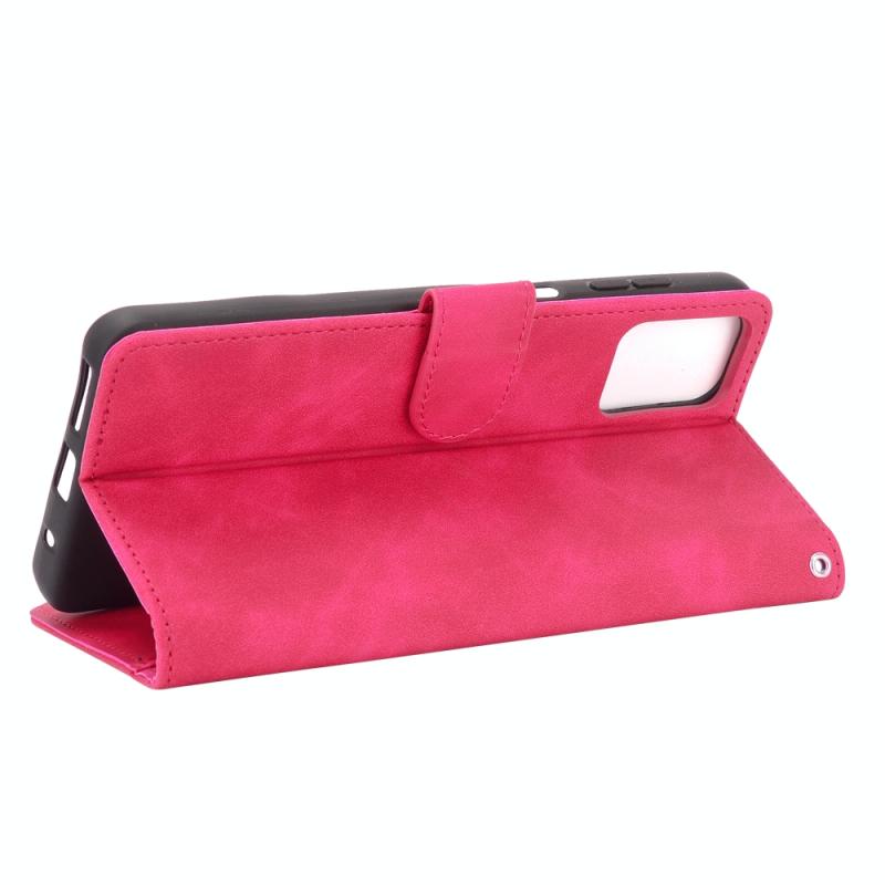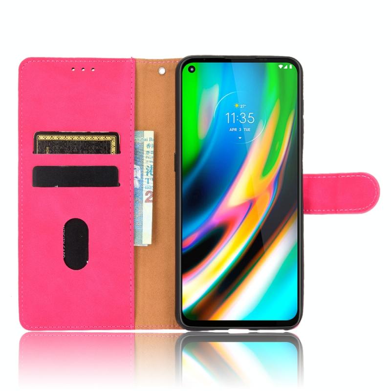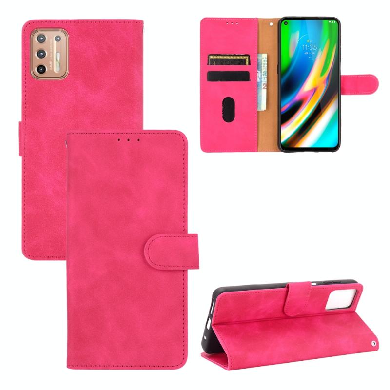 For Motorola Moto G9 Plus Solid Color Skin Feel Magnetic Buckle Horizontal Flip Calf Texture PU Leather Case with Holder & Card Slots & Wallet(Rose Red)