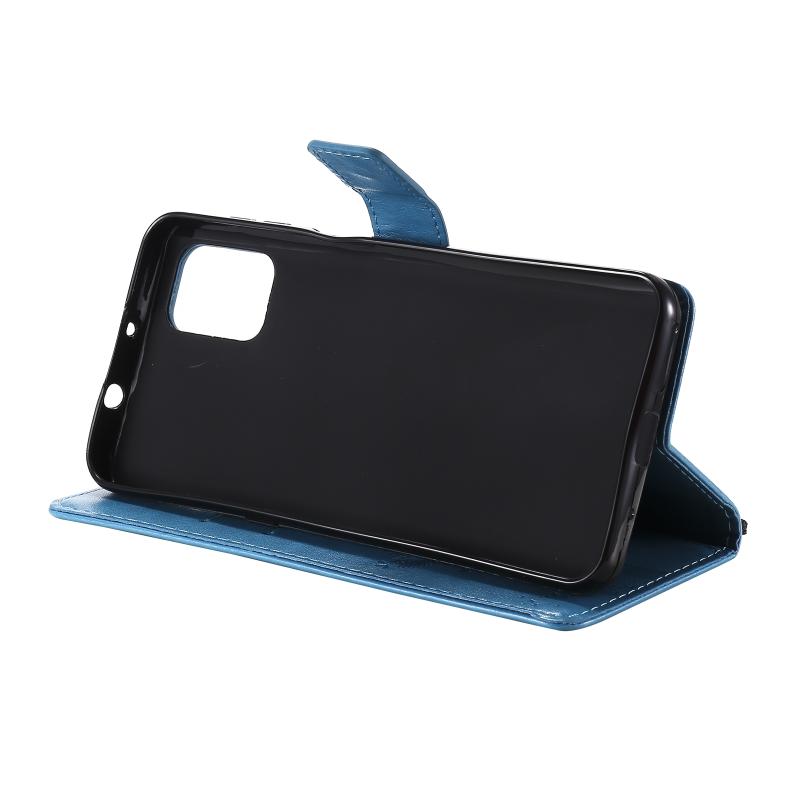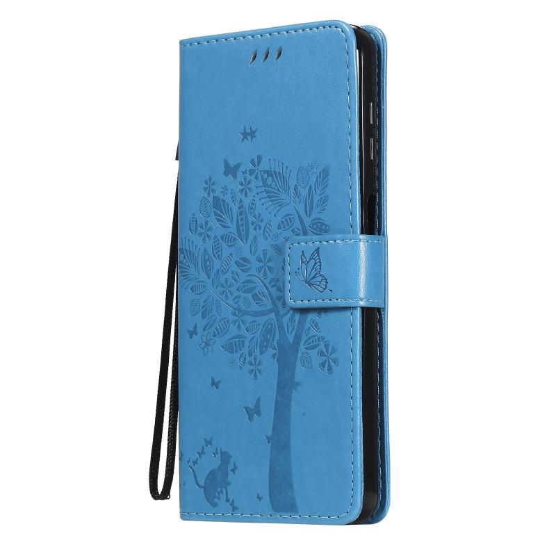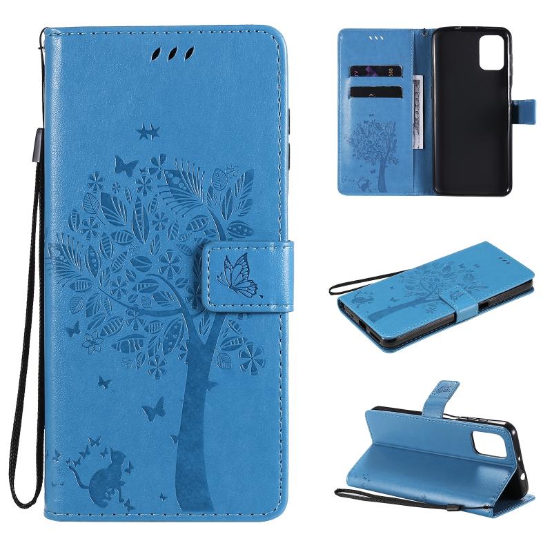 Θήκη για Motorola Moto G9 Plus με σχέδιο Δέντρου & Γάτας, εκτυπωμένη με θερμοτύπηση, οριζόντια, από δερματίνη PU με βάση στήριξης & θήκες για κάρτες & πορτοφόλι & κορδόνι (Χρυσό)