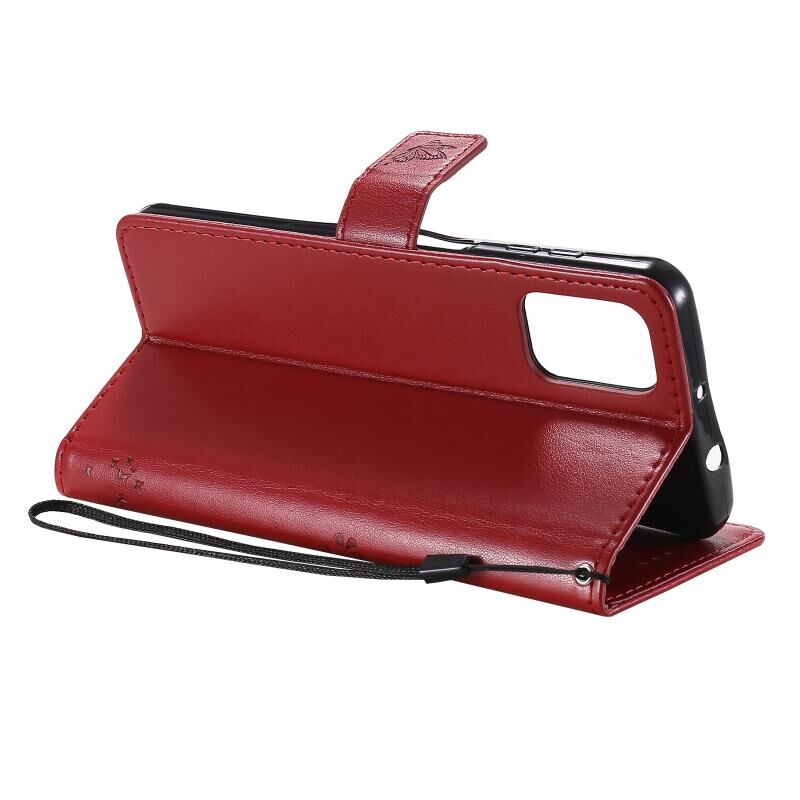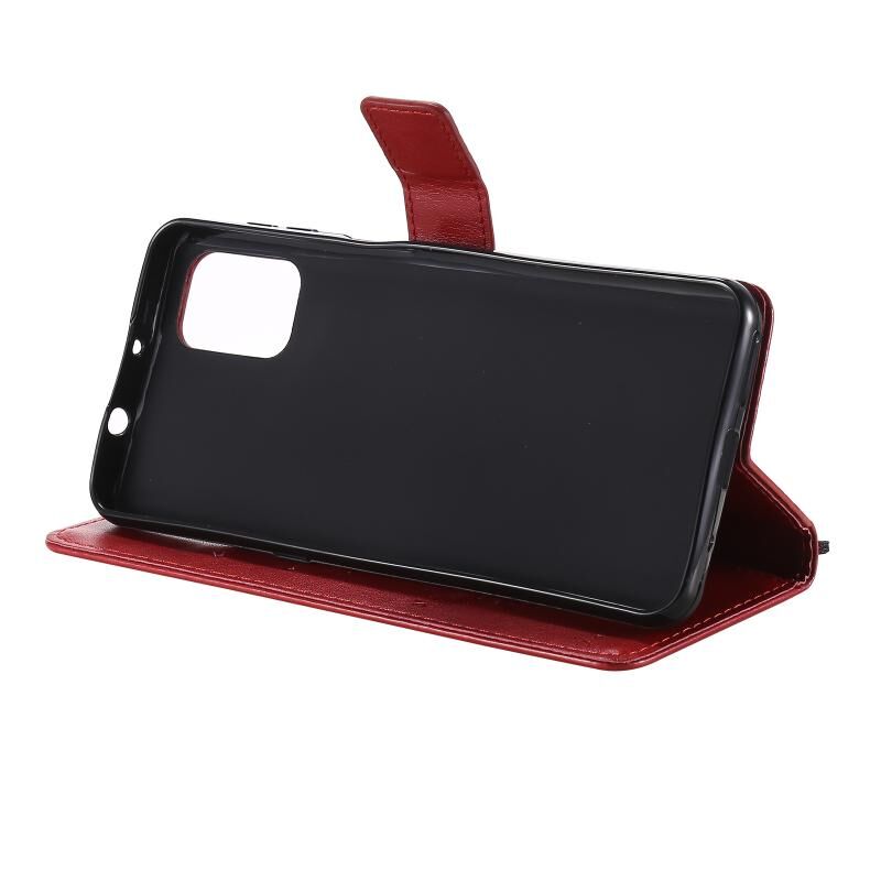 Θήκη για Motorola Moto G9 Plus με σχέδιο Δέντρου & Γάτας, εκτυπωμένη με θερμοτύπωση, οριζόντια, από δερματίνη PU με βάση στήριξης & θήκες για κάρτες & πορτοφόλι & κορδόνι (Ανοιχτό Μωβ)