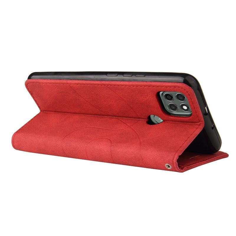 Για Motorola Moto G9 Power Διπλό χρώμα Splicing οριζόντια Flip PU δέρμα υπόθεση με θήκη & υποδοχές για κάρτες & πορτοφόλι (κόκκινο)