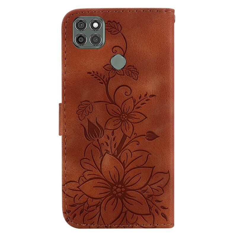 Θήκη τηλεφώνου δερμάτινη ανάγλυφη Lily για Motorola Moto G9 Power (Καφέ)