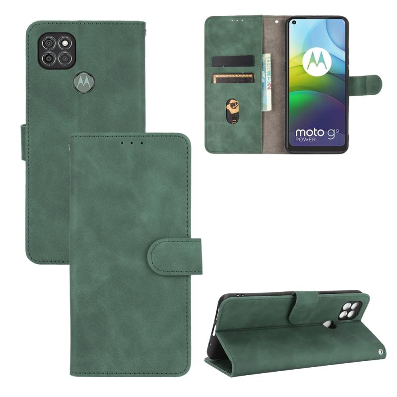 Θήκη για Motorola Moto G9 Power, μονόχρωμη, με αίσθηση δέρματος, μαγνητικό κούμπωμα, οριζόντια, με υφή μοσχαριού, από δερματίνη PU, με βάση & θήκες για κάρτες & πορτοφόλι (Καφέ)