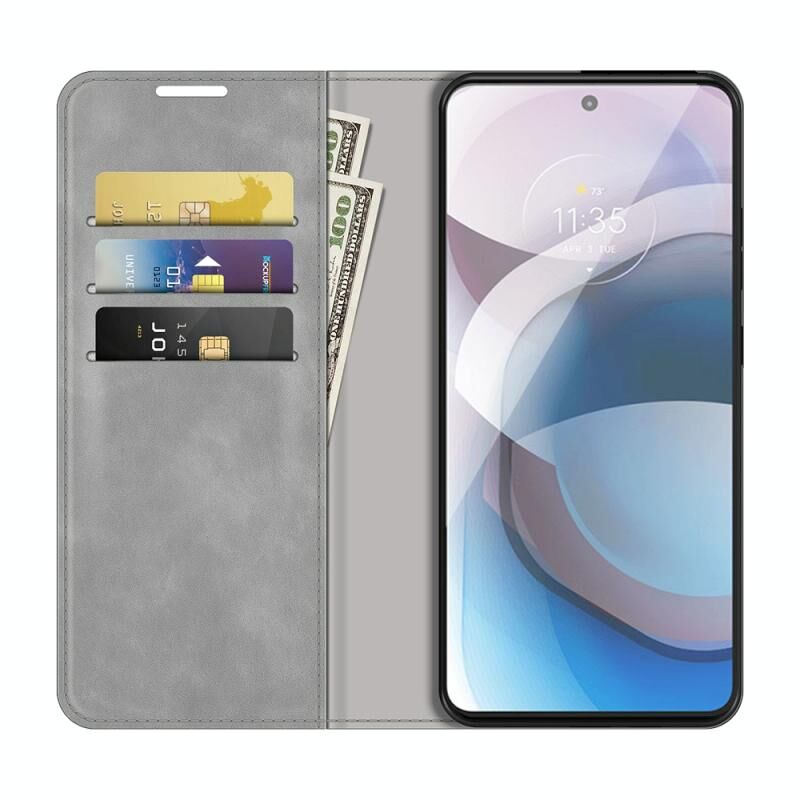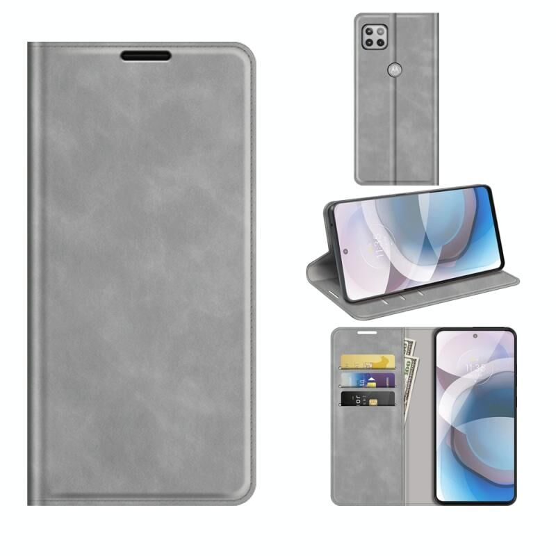 Για Motorola Moto One 5G Ace Retro-skin Business Μαγνητική δερμάτινη θήκη αναρρόφησης με θήκη & υποδοχές καρτών & πορτοφόλι (γκρι)
