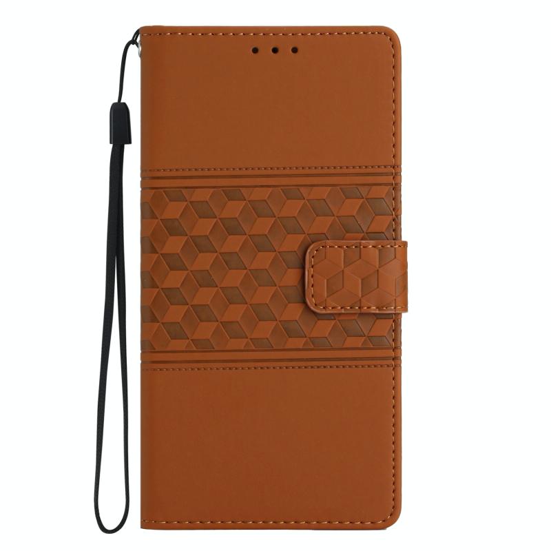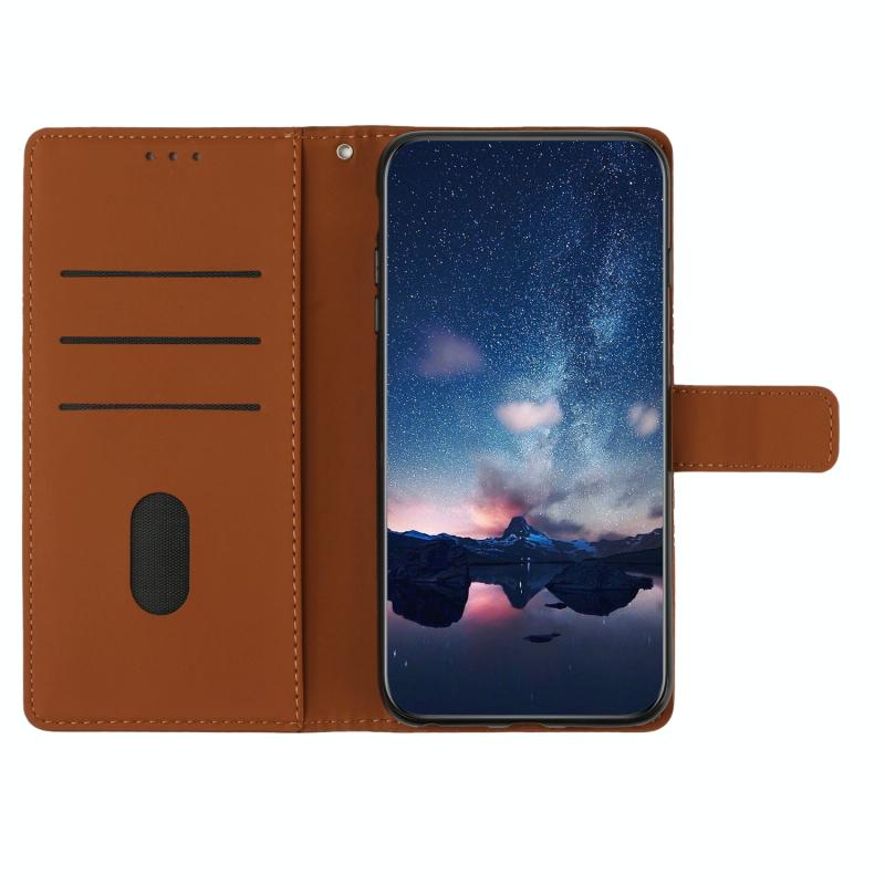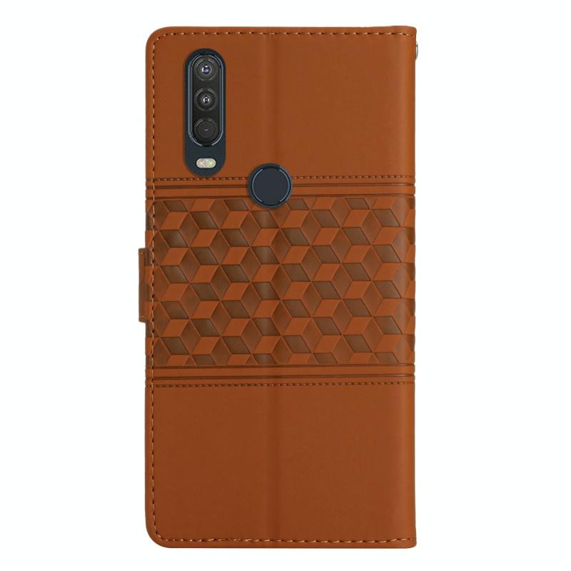 Θήκη κινητού τηλεφώνου δερμάτινη με ανάγλυφο σχέδιο για Motorola Moto One Action με κορδόνι (Καφέ)