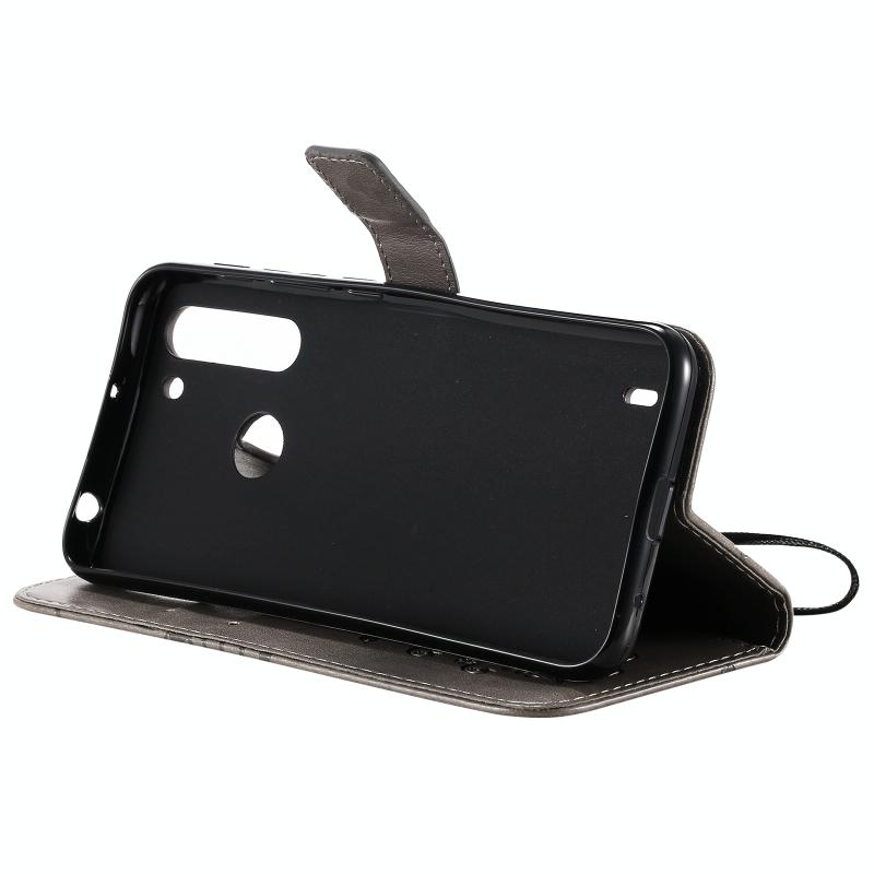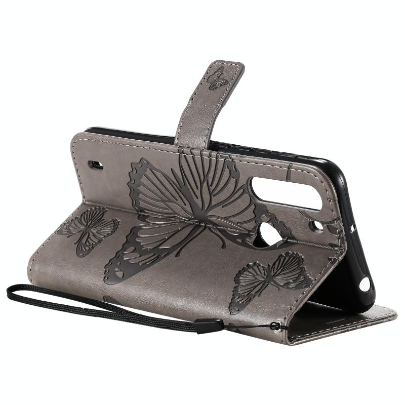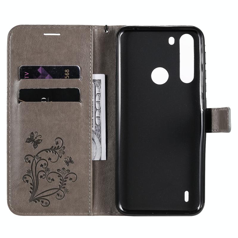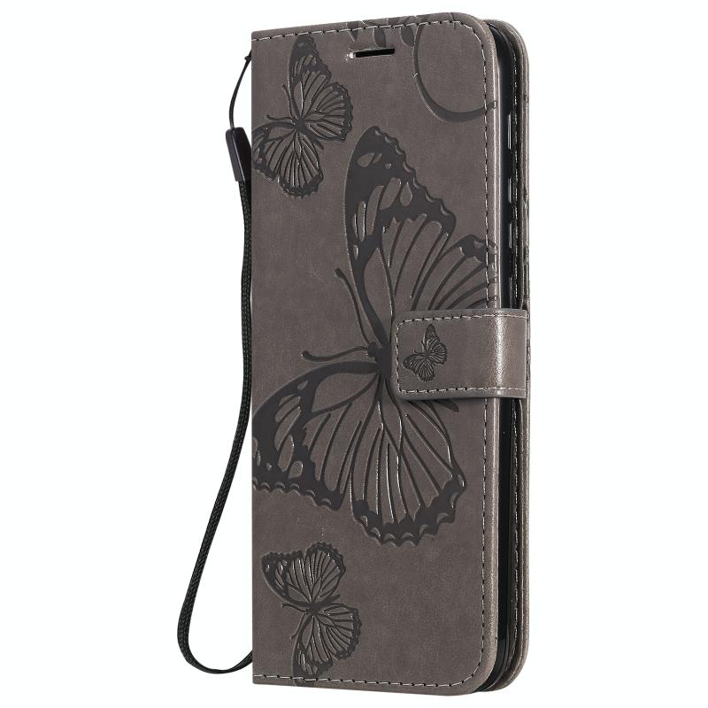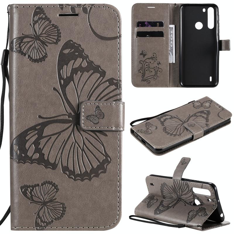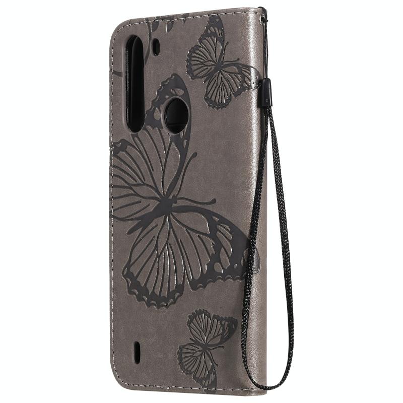 Θήκη δέρματος οριζόντιας αναδίπλωσης για Motorola Moto One Fusion με ανάγλυφο σχέδιο 3D πεταλούδων, με βάση & υποδοχή κάρτας & πορτοφόλι (Χρυσό Ρόδι)