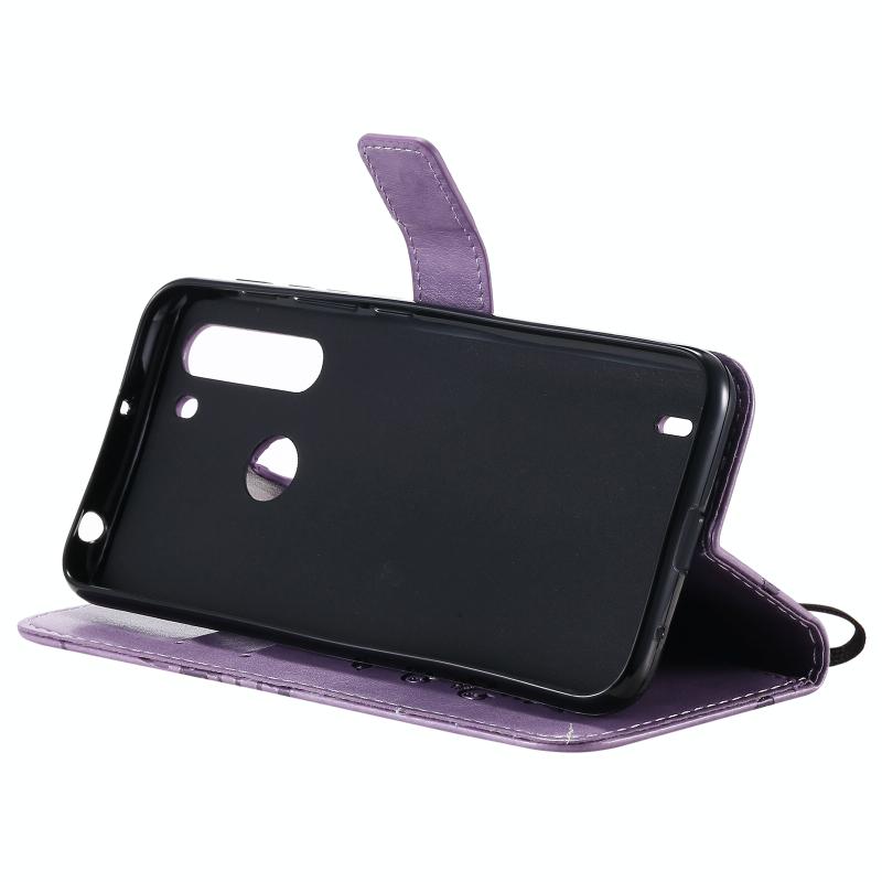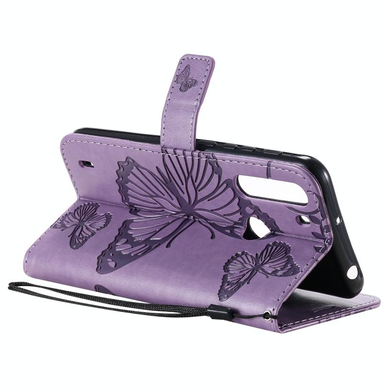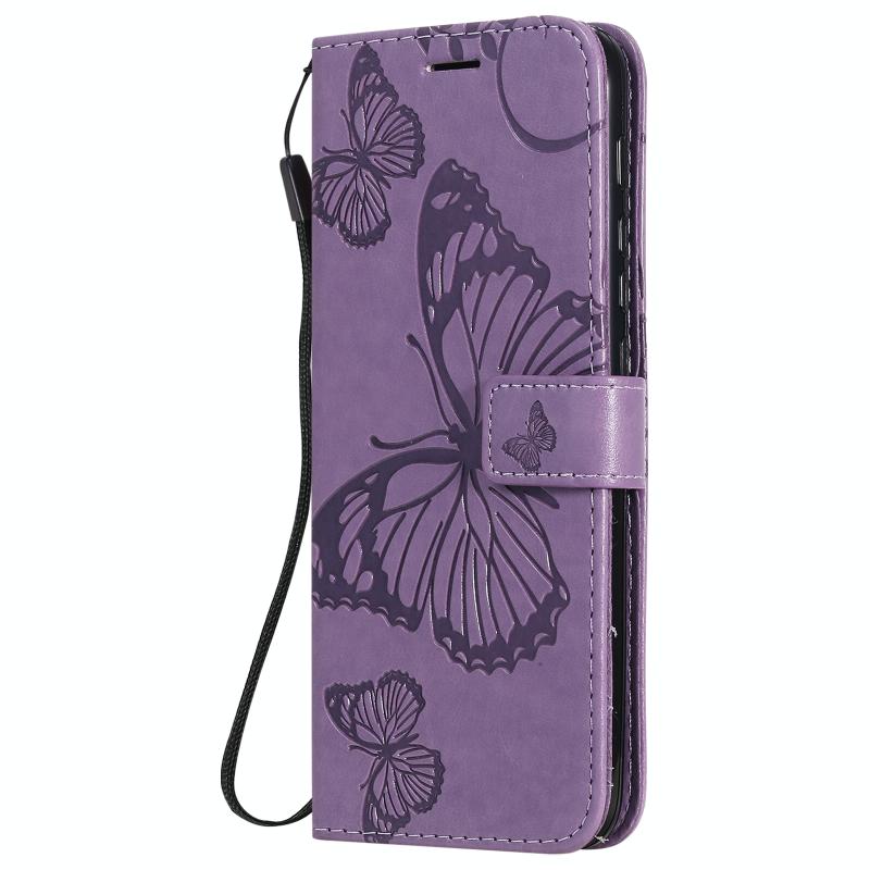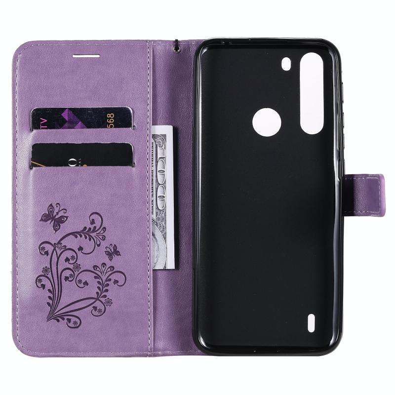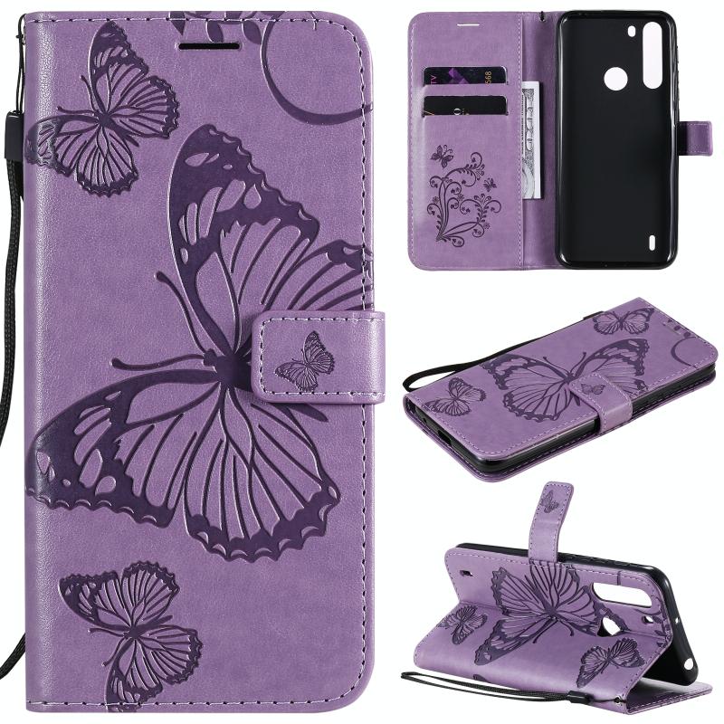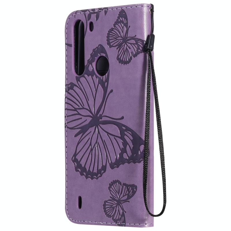 Θήκη δέρματος οριζόντιας αναδίπλωσης για Motorola Moto One Fusion με ανάγλυφο σχέδιο 3D πεταλούδων, με βάση & υποδοχή κάρτας & πορτοφόλι (Χρυσό Ρόδι)