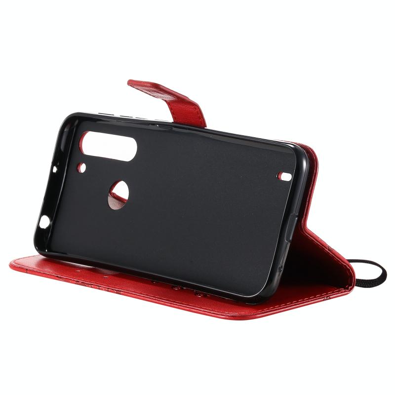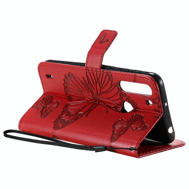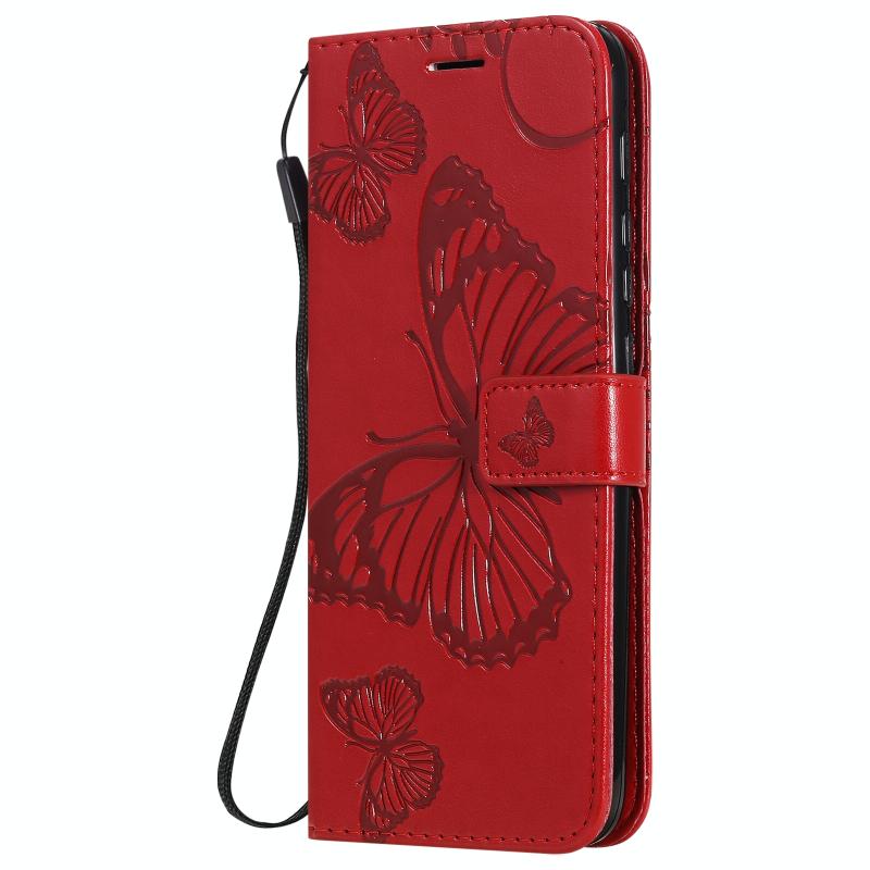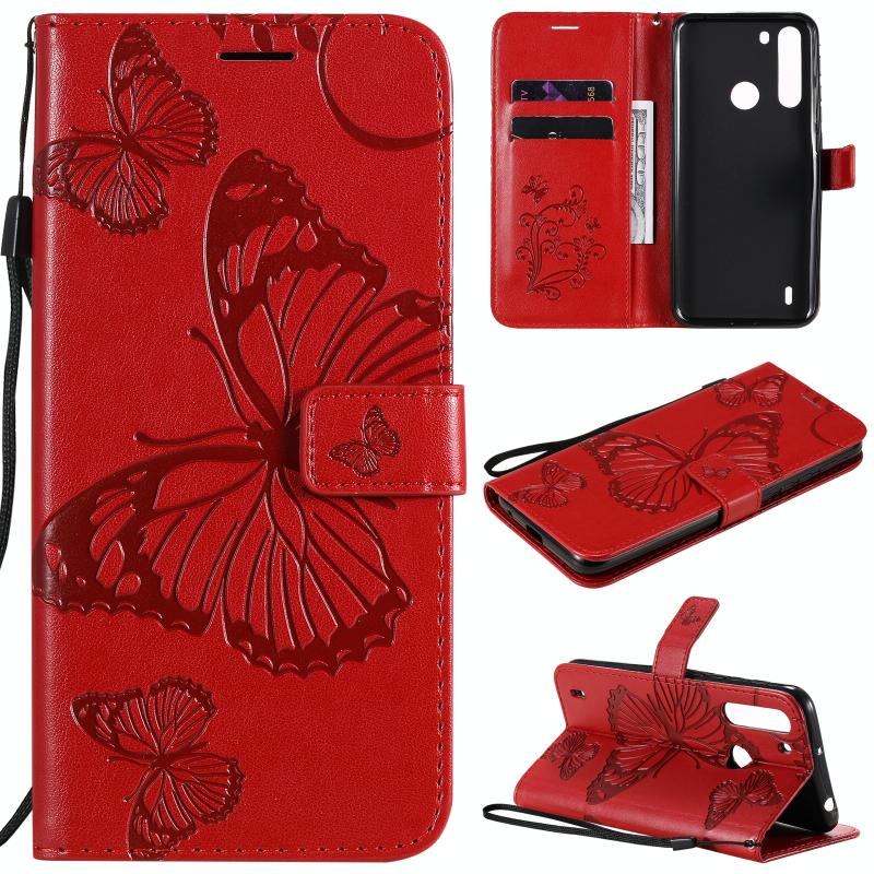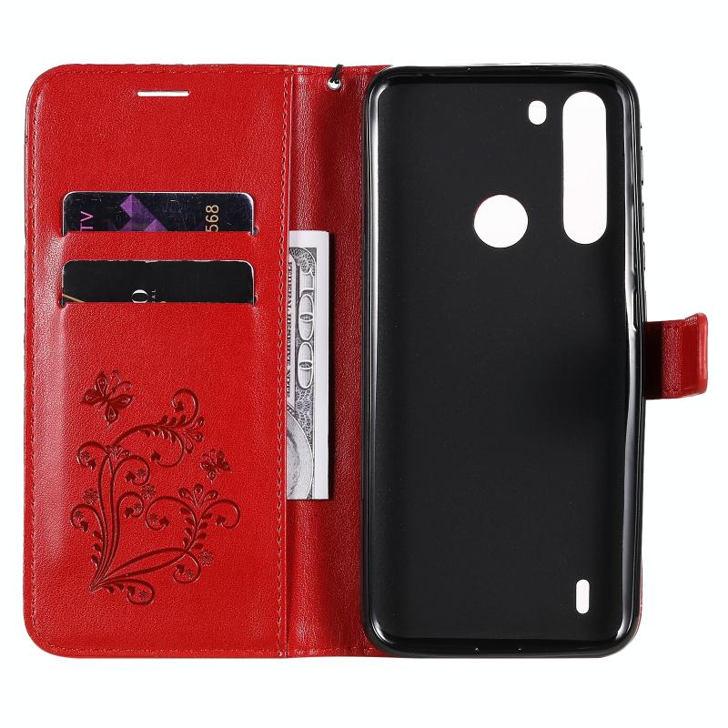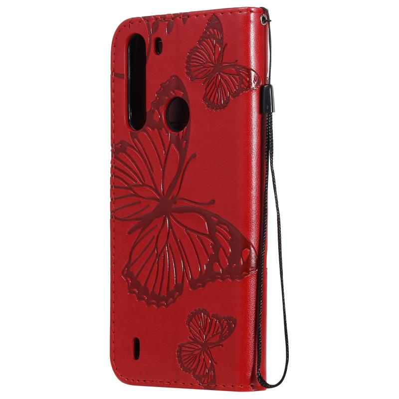 Θήκη δέρματος οριζόντιας αναδίπλωσης για Motorola Moto One Fusion με ανάγλυφο σχέδιο 3D πεταλούδων, με βάση & υποδοχή κάρτας & πορτοφόλι (Χρυσό Ρόδι)