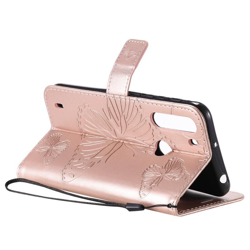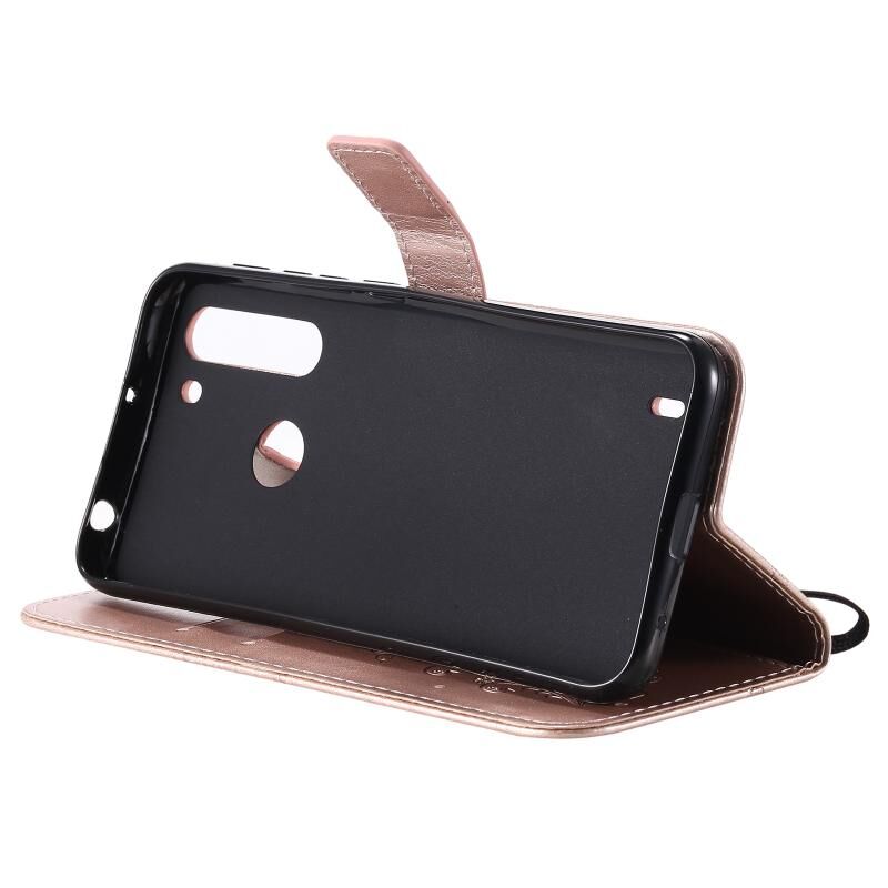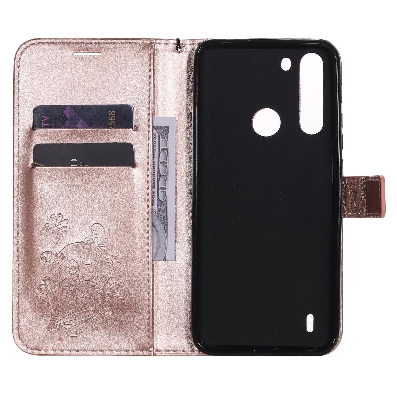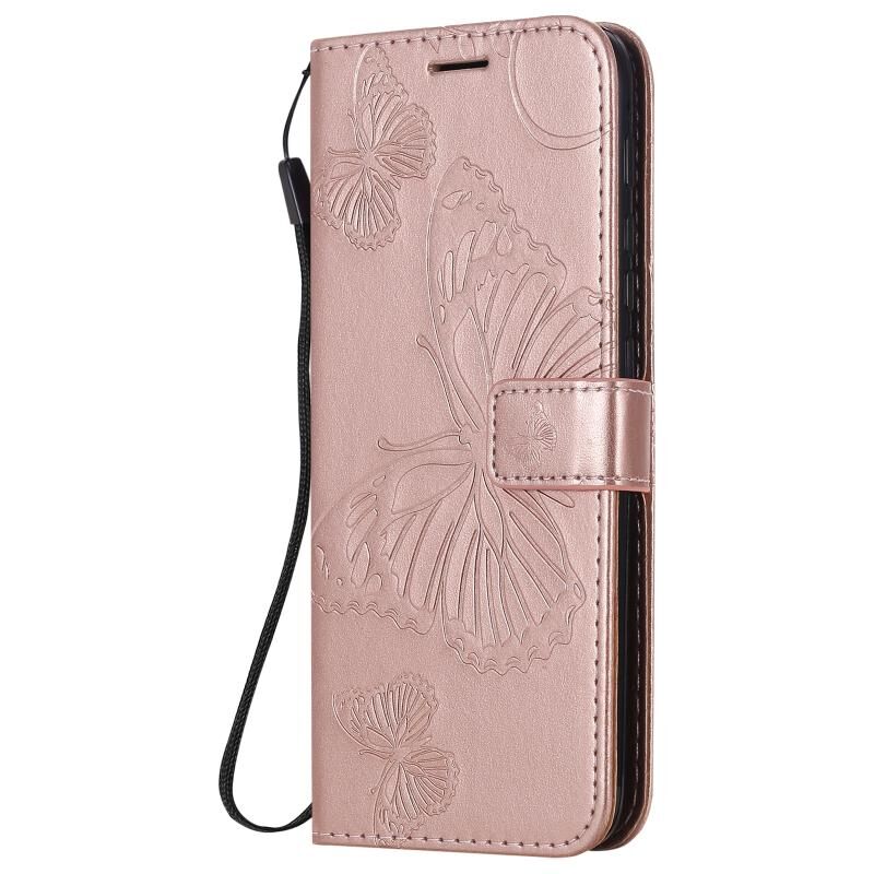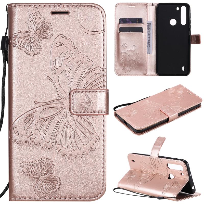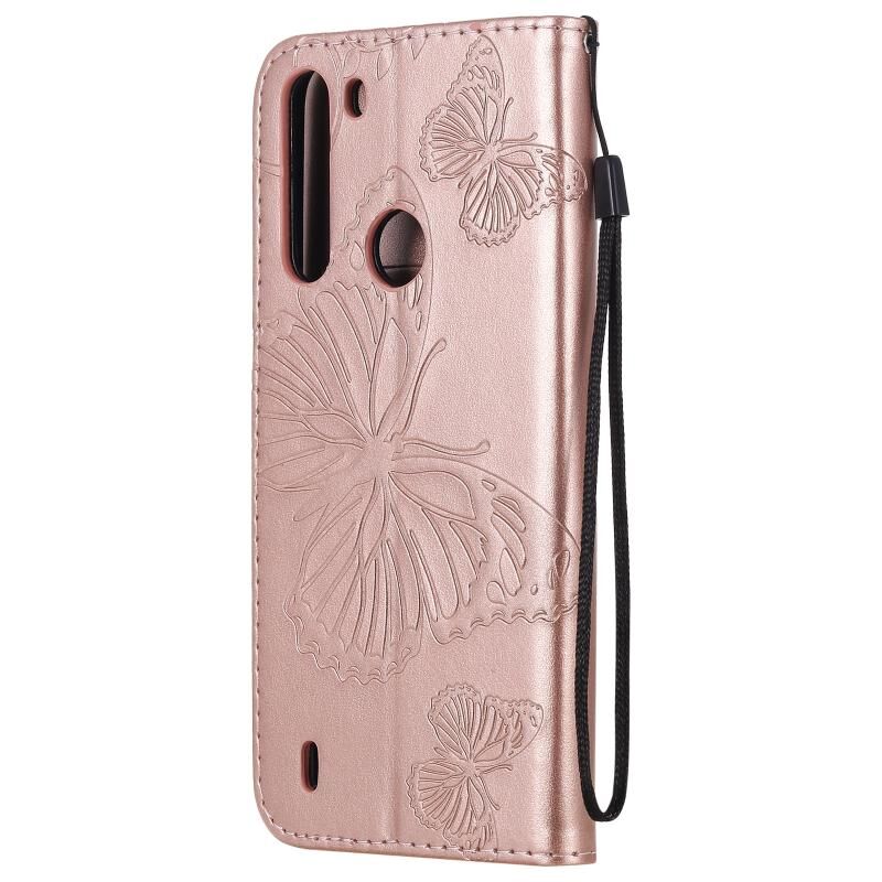 Θήκη δέρματος οριζόντιας αναδίπλωσης για Motorola Moto One Fusion με ανάγλυφο σχέδιο 3D πεταλούδων, με βάση & υποδοχή κάρτας & πορτοφόλι (Χρυσό Ρόδι)