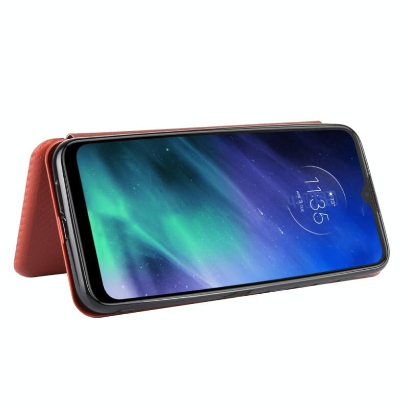 Για Motorola Moto One Fusion Carbon Fiber υφή οριζόντια Flip TPU + PC + PU δέρμα υπόθεση με σχοινί & υποδοχή κάρτας (καφέ)