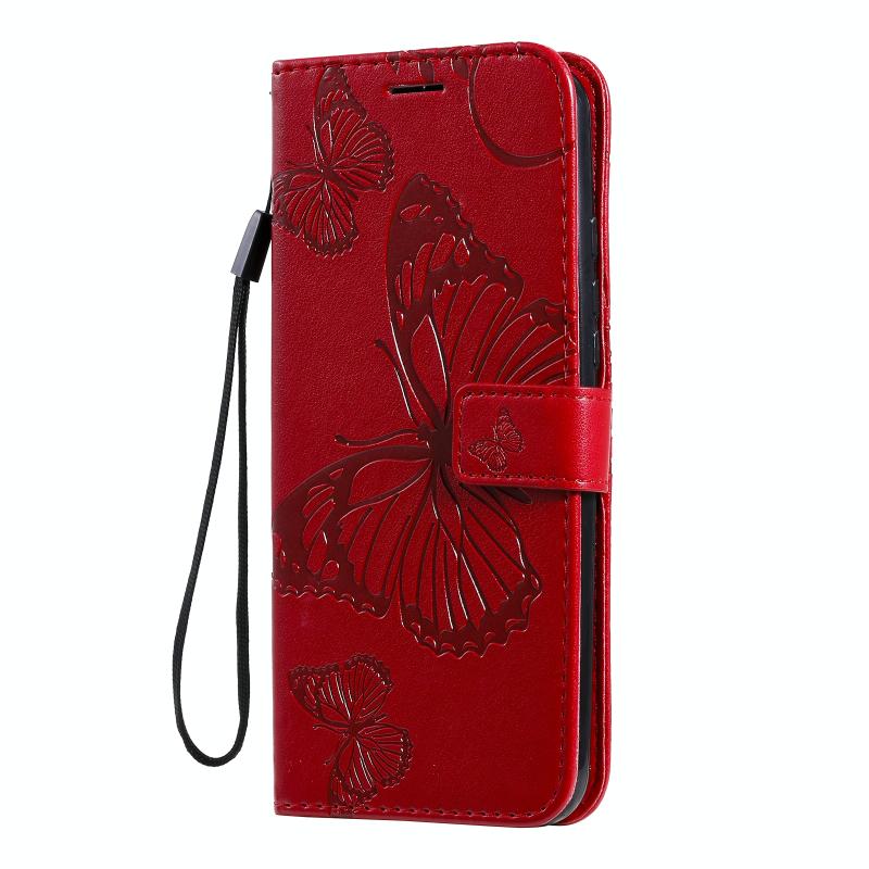 Θήκη δέρματος οριζόντιας αναδίπλωσης για Motorola Moto One Fusion Plus με ανάγλυφο σχέδιο 3D πεταλούδων, με βάση & υποδοχή κάρτας & πορτοφόλι (Χρυσό Ρόδι)
