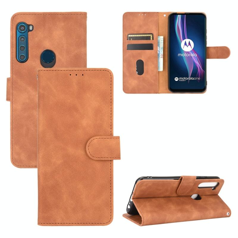 For Motorola Moto One Fusion Plus Solid Color Skin Feel Magnetic Buckle Horizontal Flip Calf Texture PU Leather Case with Holder & Card Slots & Wallet(Brown)