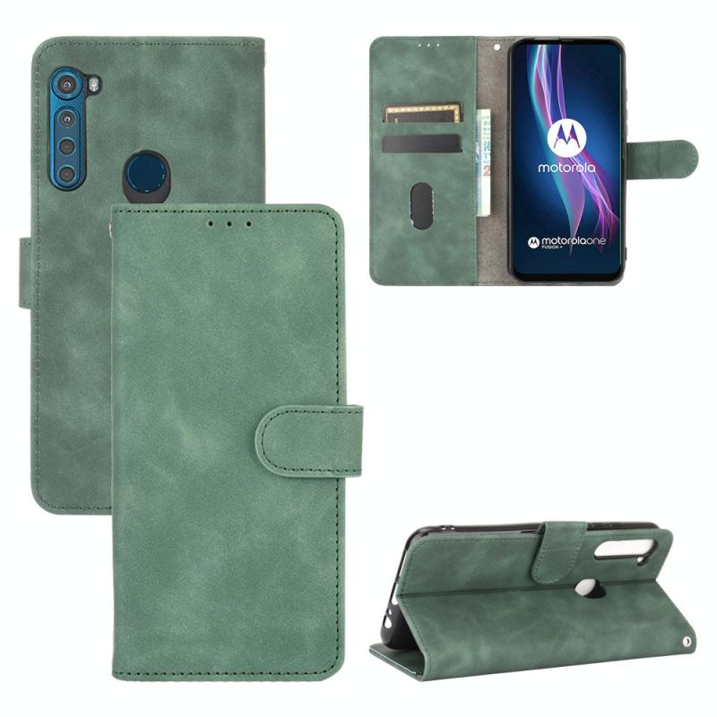 For Motorola Moto One Fusion Plus Solid Color Skin Feel Magnetic Buckle Horizontal Flip Calf Texture PU Leather Case with Holder & Card Slots & Wallet(Green)