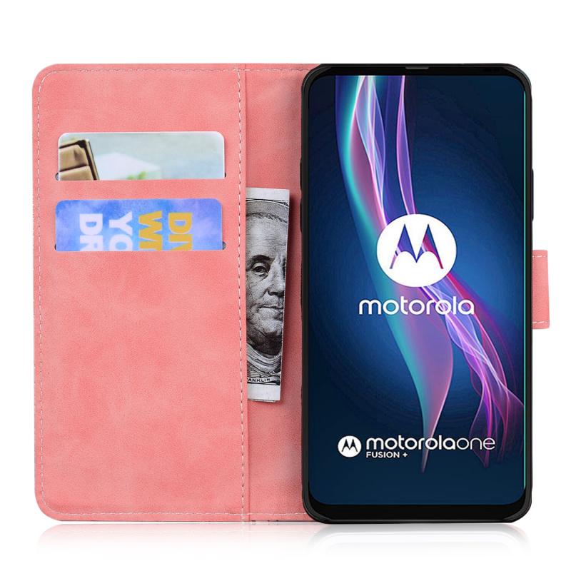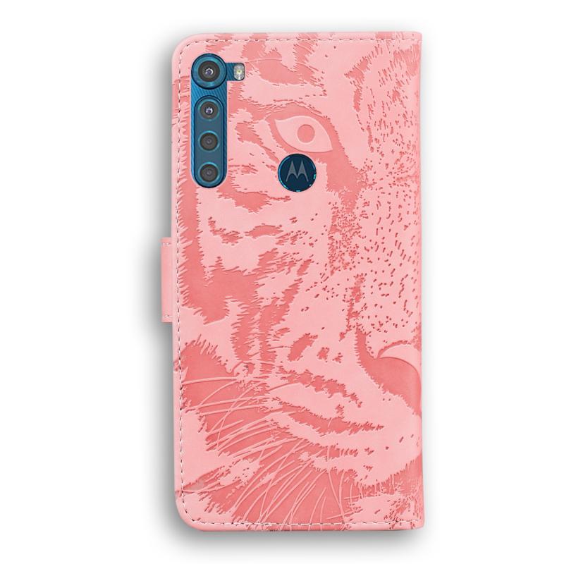 For Motorola Moto One Fusion Plus Tiger Embossing Pattern Horizontal Flip Leather Case with Holder & Card Slots & Wallet(Pink)