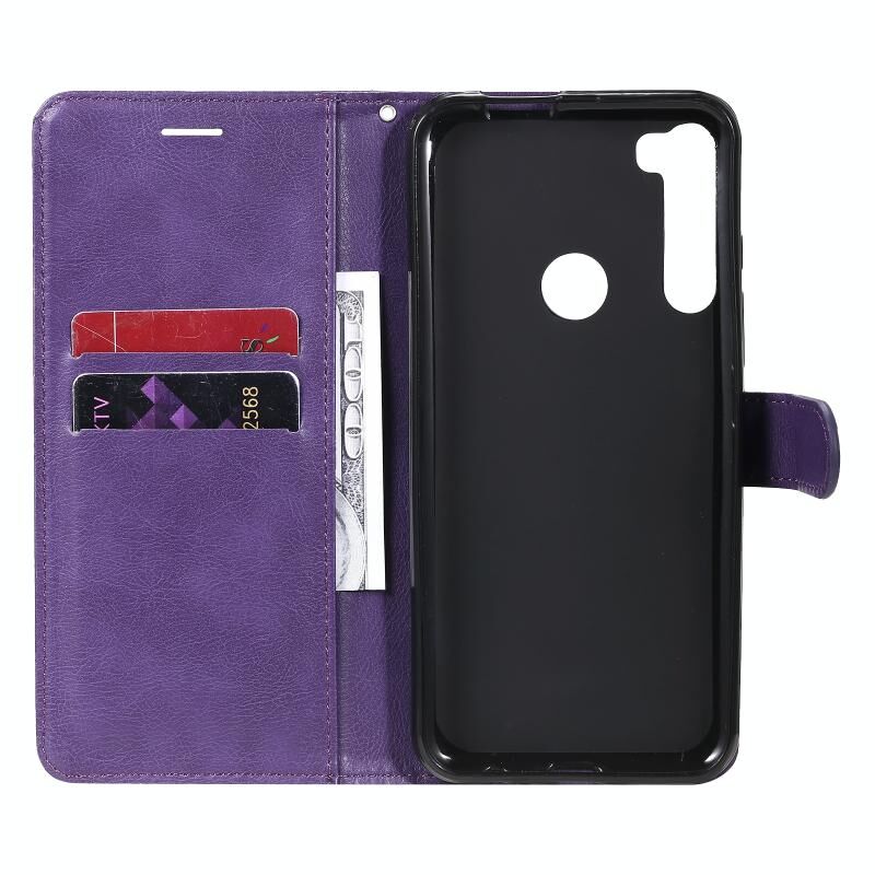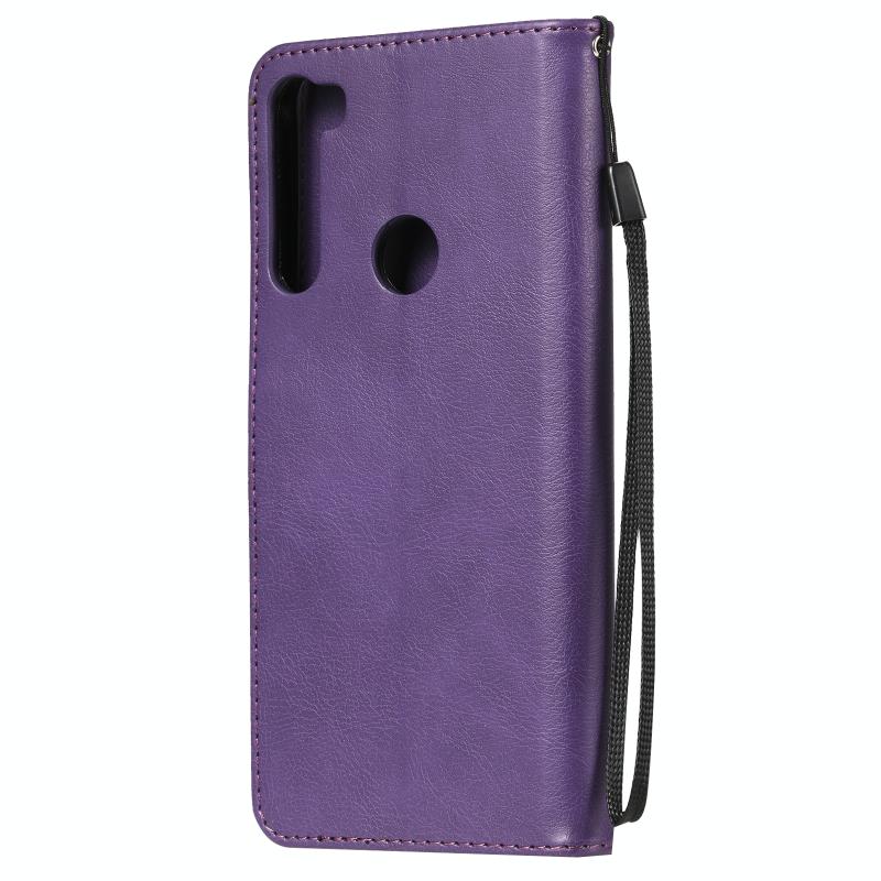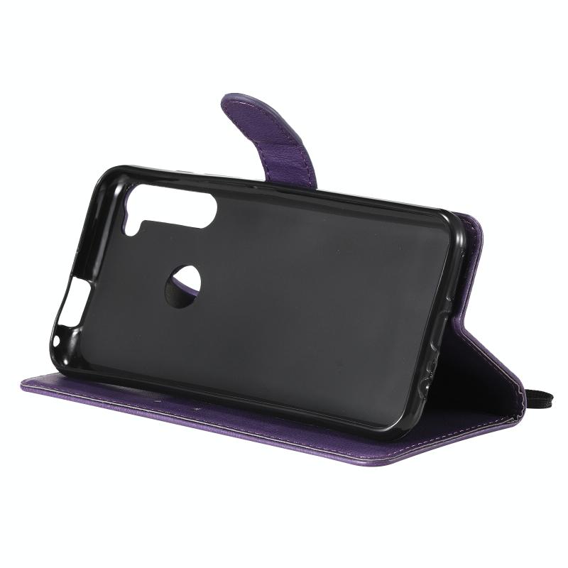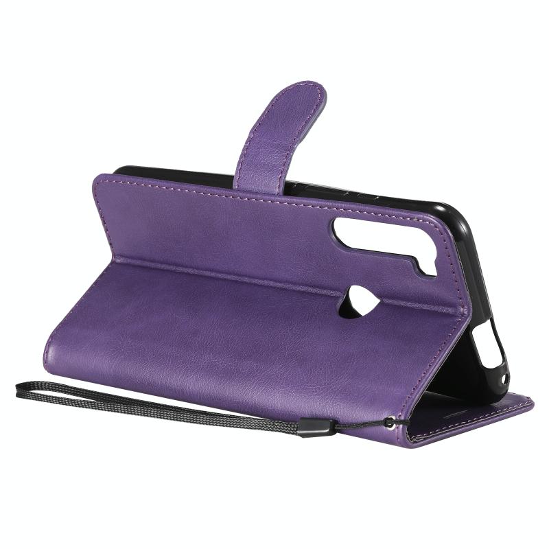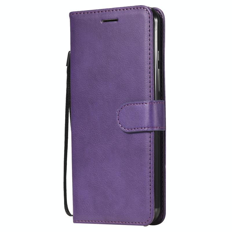 Θήκη δέρματος προστασίας οριζόντιας αναδίπλωσης για Motorola Moto One Fusion Plus σε μονόχρωμο σχέδιο με βάση, θήκες καρτών, πορτοφόλι, κορνίζα φωτογραφιών και κορδόνι (Χρυσορόδινο). (Μωβ)
