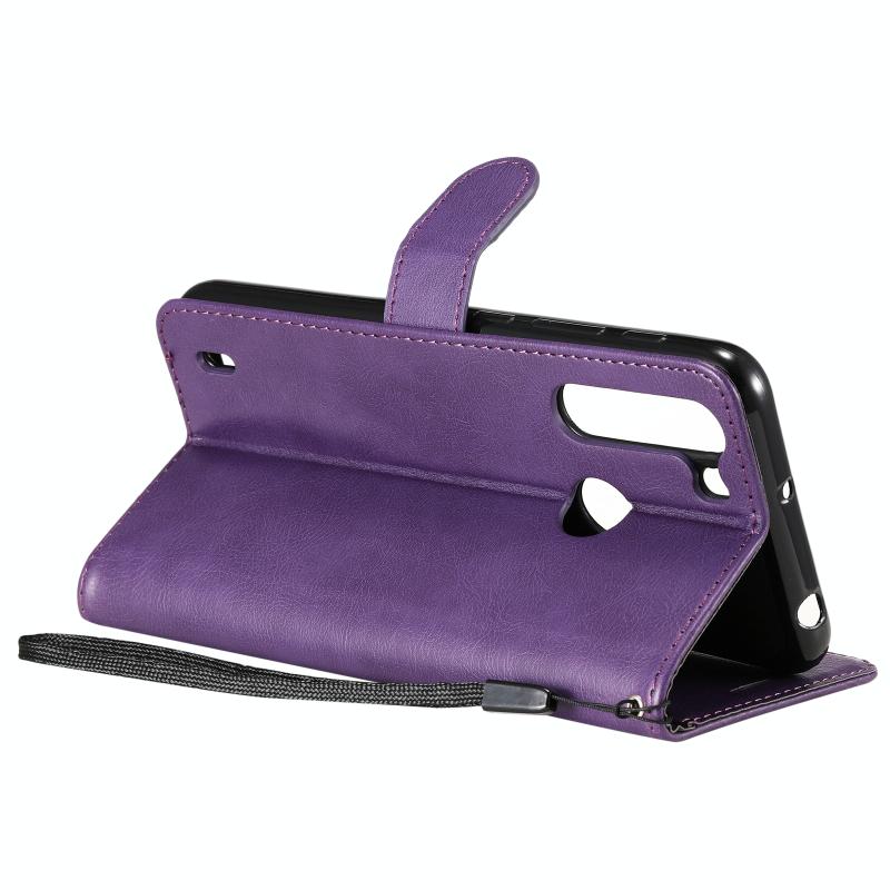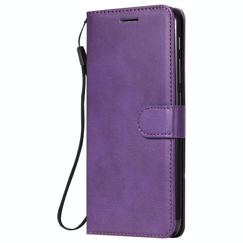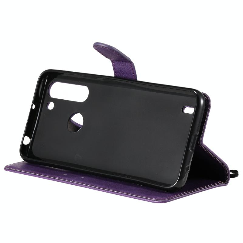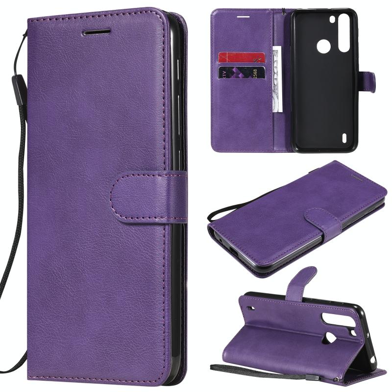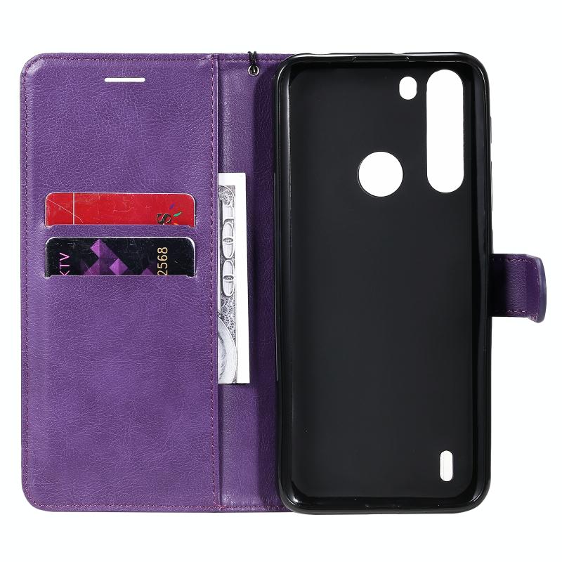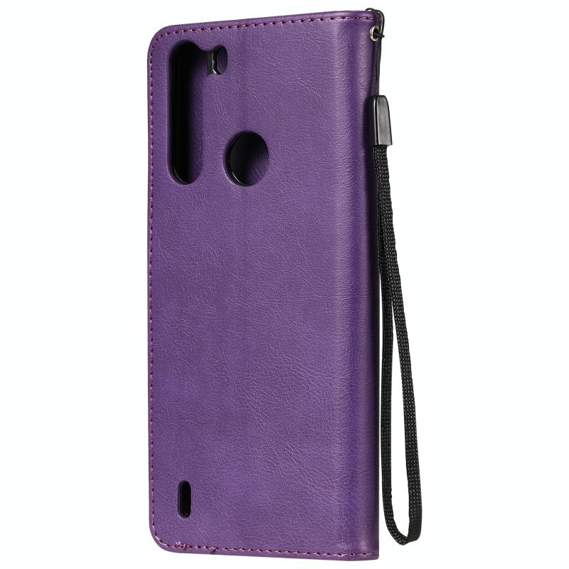 Θήκη δέρματος προστασίας με οριζόντιο άνοιγμα για Motorola Moto One Fusion, σε μονόχρωμο σχέδιο, με βάση, θήκες καρτών, πορτοφόλι, κορνίζα φωτογραφιών και κορδόνι (Χρυσορόδινο).