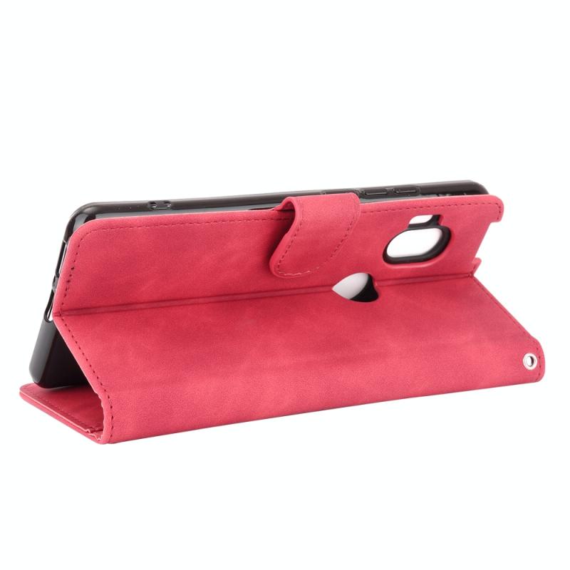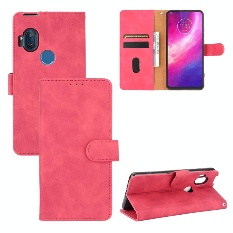 For Motorola Moto One Hyper Solid Color Skin Feel Magnetic Buckle Horizontal Flip Calf Texture PU Leather Case with Holder & Card Slots & Wallet(Rose Red)