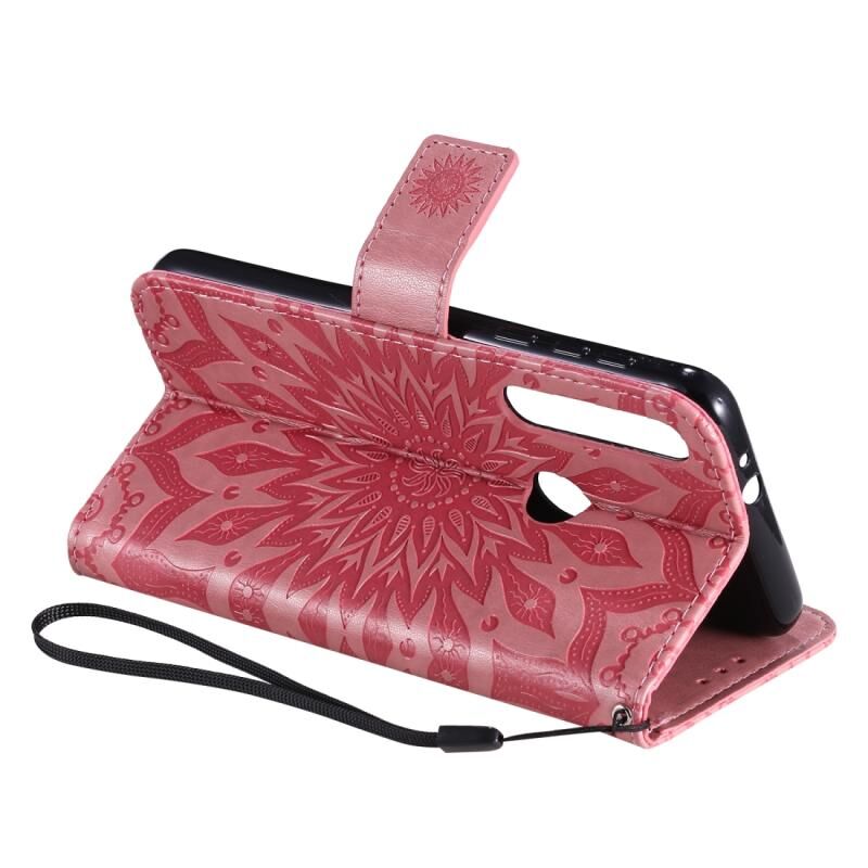 Θήκη για Motorola MOTO One Pressed με εκτύπωση ηλίανθου, οριζόντια, από δερματίνη PU με βάση στήριξης & θήκες για κάρτες & πορτοφόλι & κορδόνι (Γκρι)