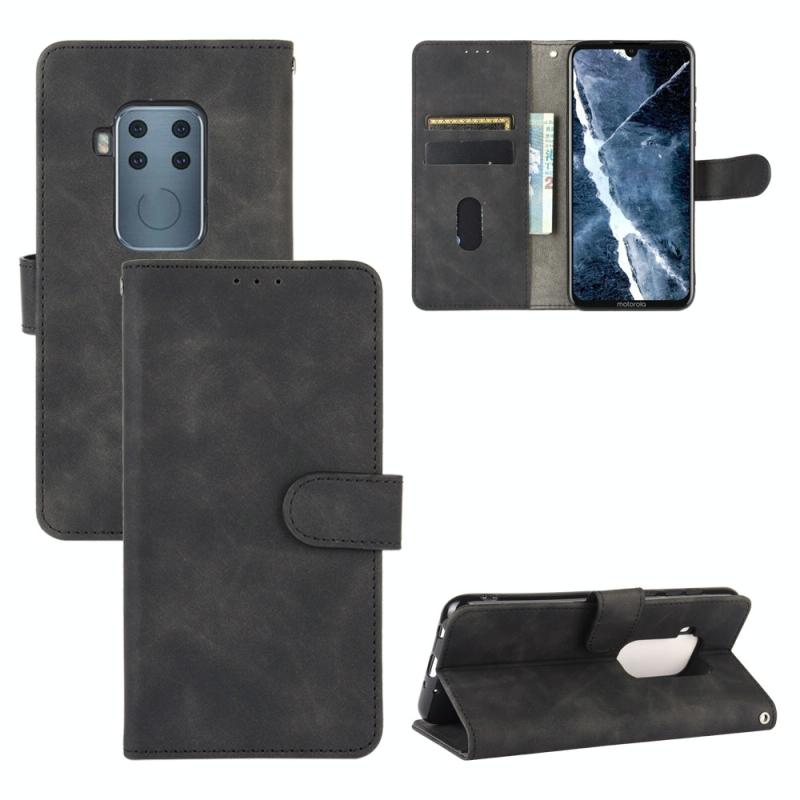 For Motorola Moto One Pro / One Zoom Solid Color Skin Feel Magnetic Buckle Horizontal Flip Calf Texture PU Leather Case with Holder & Card Slots & Wallet(Black)