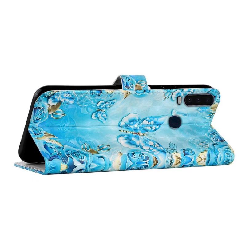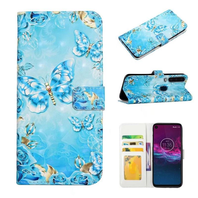 For Motorola Moto P40 Power Oil Embossed 3D Drawing Leather Phone Case(Blue Butterflies)