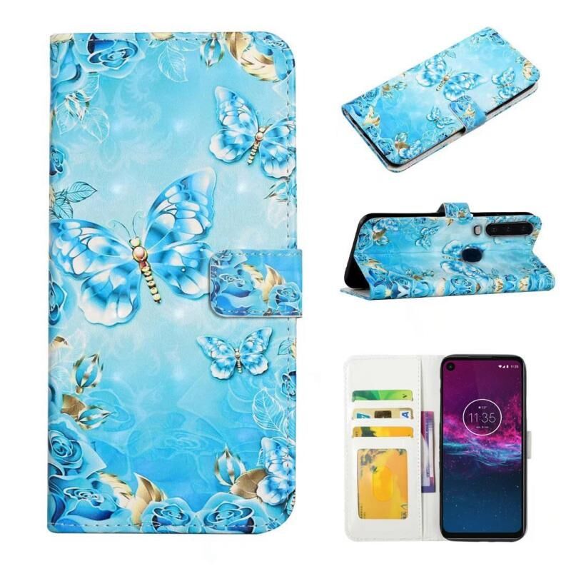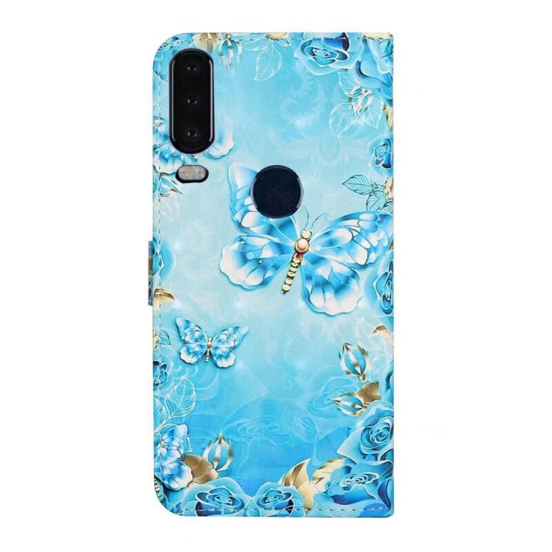 Θήκη τηλεφώνου δερμάτινη με ανάγλυφο σχέδιο 3D (Μπλε πεταλούδες) για Motorola Moto P40 Power.