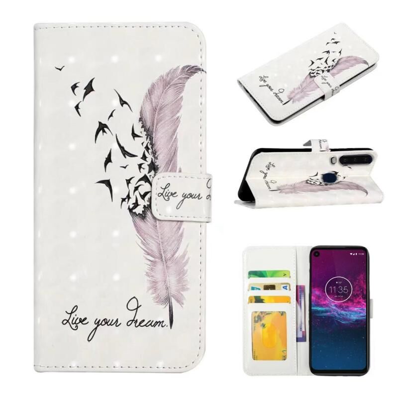 Θήκη τηλεφώνου δερμάτινη με ανάγλυφο σχέδιο 3D για Motorola Moto P40 Power (Φτερό)