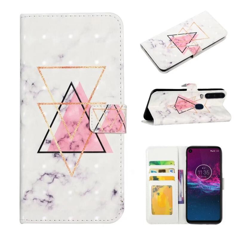 Θήκη τηλεφώνου δερμάτινη με ανάγλυφο σχέδιο 3D για Motorola Moto P40 Power (Τριγωνικό Μάρμαρο)