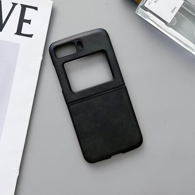 Για Motorola Moto Razr 2022 Δύο χρώμα Cowhide Υφή Top-grain δέρμα τηλέφωνο υπόθεση (μαύρο)