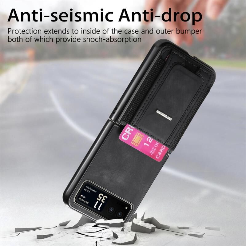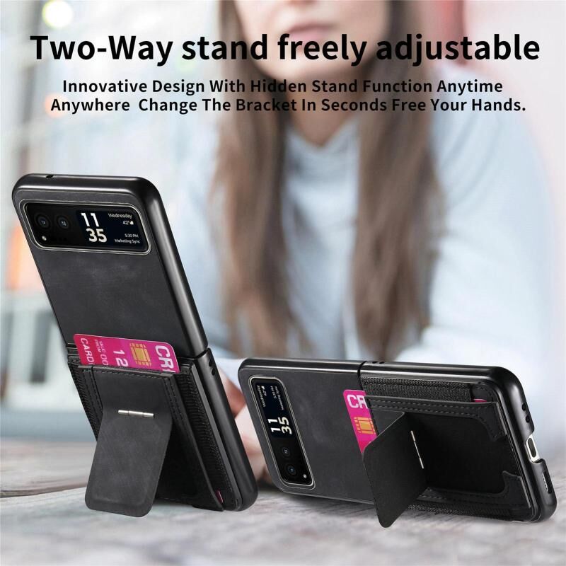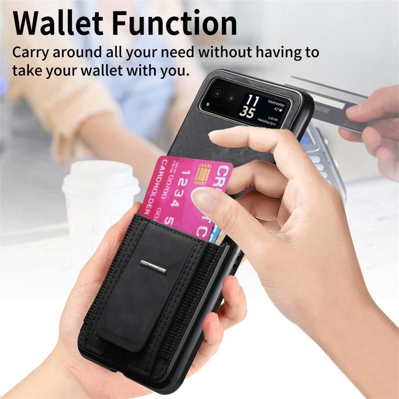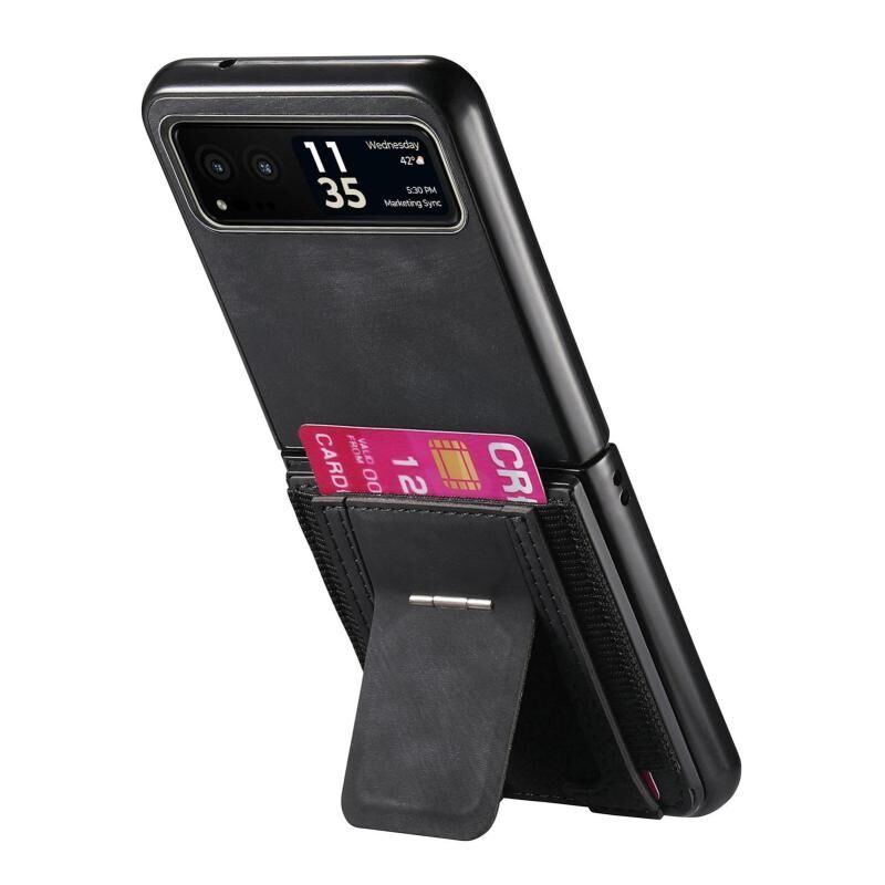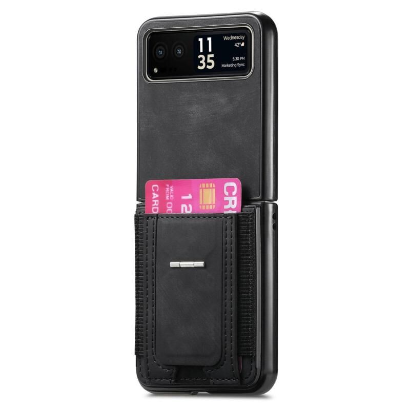 Θήκη τηλεφώνου Motorola Moto Razr 40 Retro από Δέρμα με Στήριξη, Ελαστική Θήκη Κάρτας (Μαύρο)