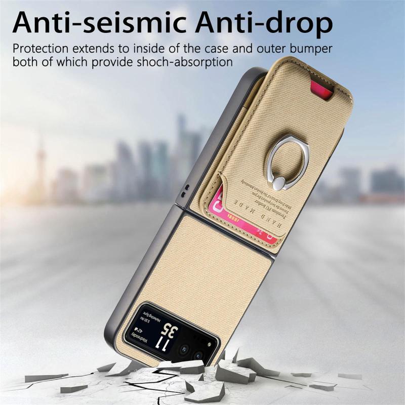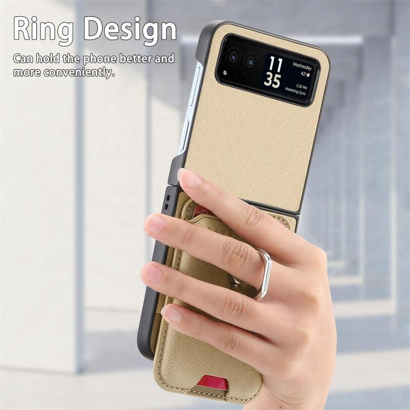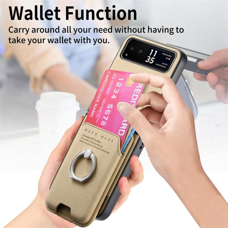 Θήκη Motorola Moto Razr 40 με Υφασμάτινη Κάρτα, Δακτύλιο & Μαγνήτη (Χακί)