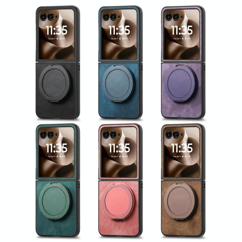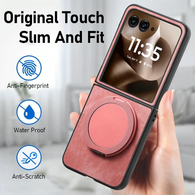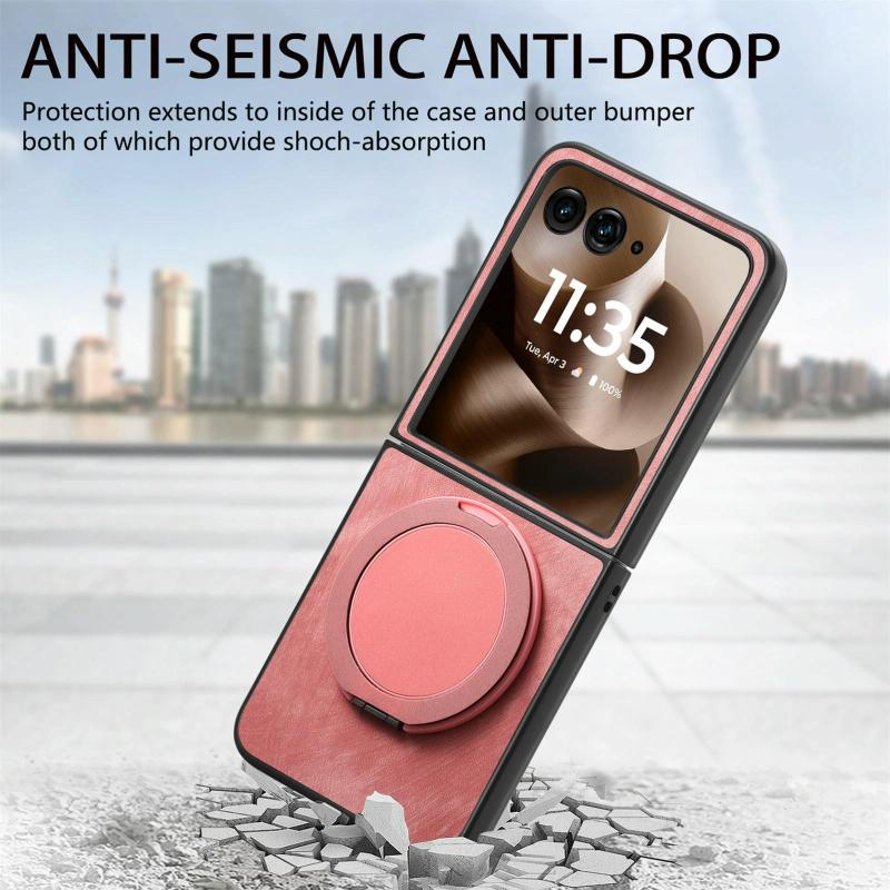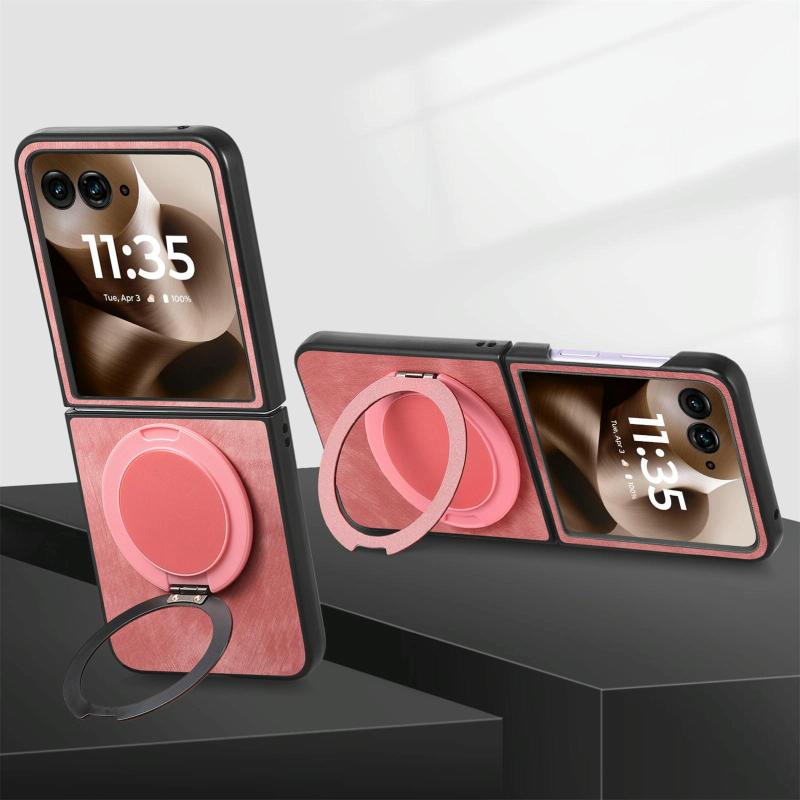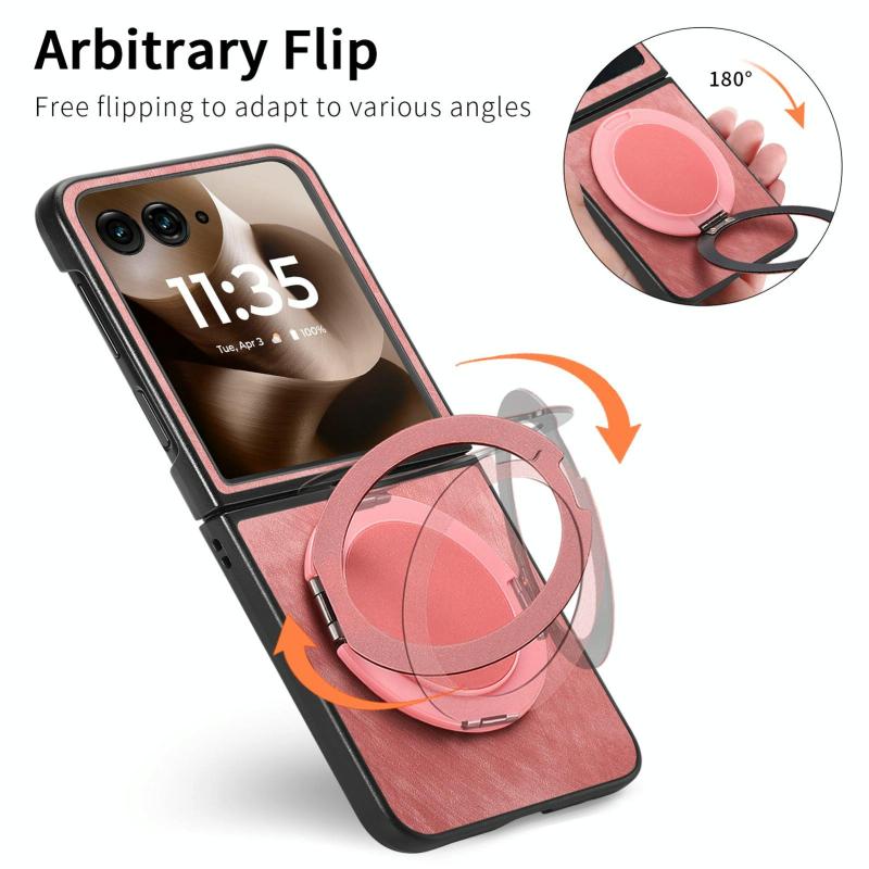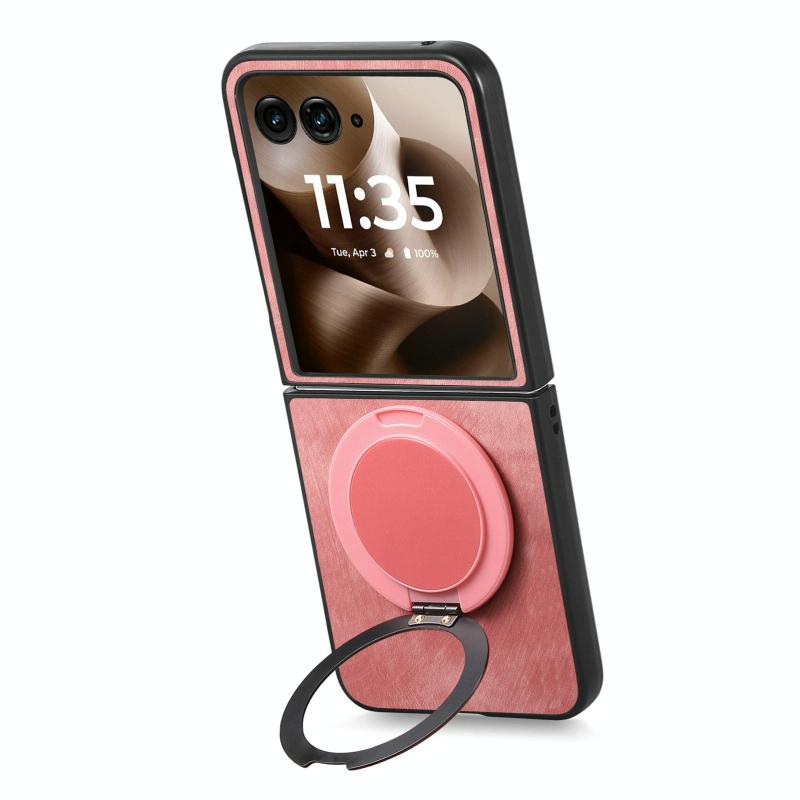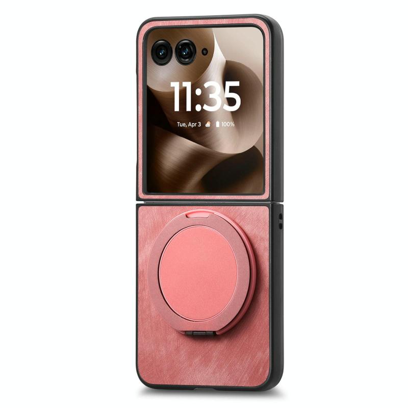 Για Motorola Moto Razr 40 Ultra Θήκη Δερμάτινη Περιστρεφόμενη με Στήριξη (Ροζ)