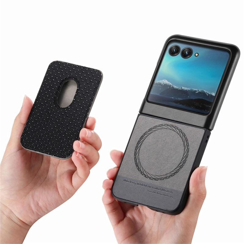 Θήκη Motorola Moto Razr 40 Ultra με κάρτες, υφασμάτινη, μαγνητική (Γκρι)