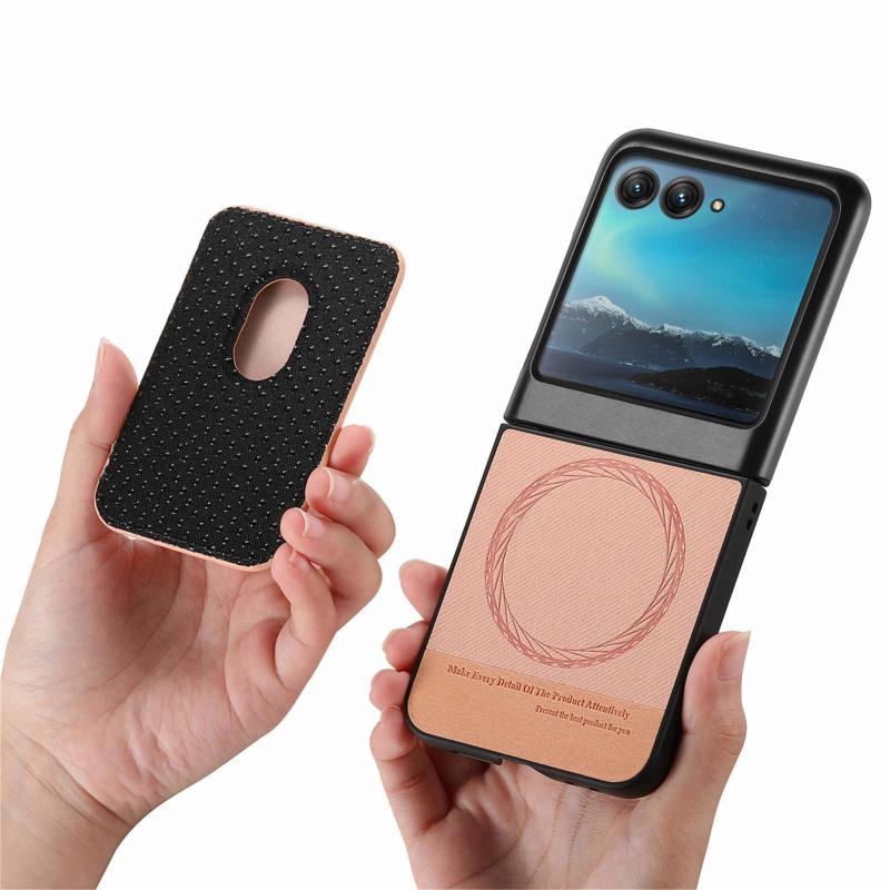 Θήκη Motorola Moto Razr 40 Ultra με κάρτες, υφασμάτινη, μαγνητική (Ροζ)