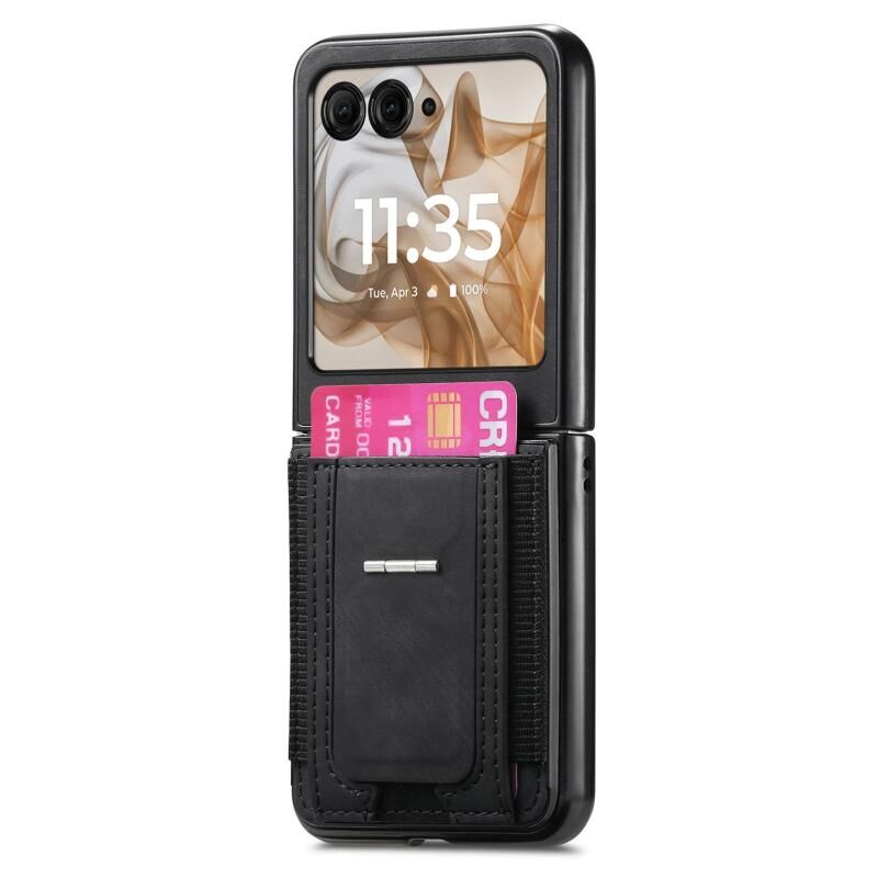 Θήκη τηλεφώνου Motorola Moto Razr 50 Retro από Δέρμα με Στήριξη, Ελαστική Θήκη Κάρτας (ρόζ)
