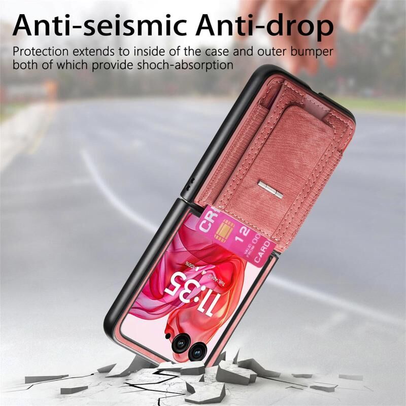Θήκη τηλεφώνου Motorola Moto Razr 50 Ultra από αναδρομικό δέρμα με βάση στήριξης, ελαστική τσέπη για κάρτες (ρόζ)