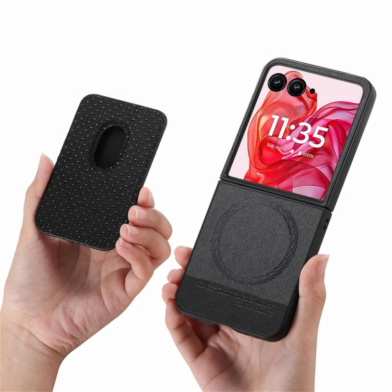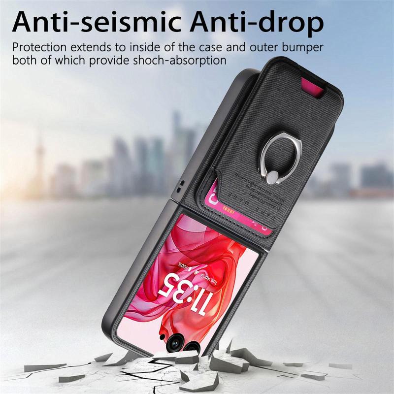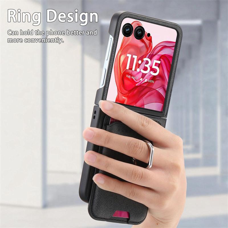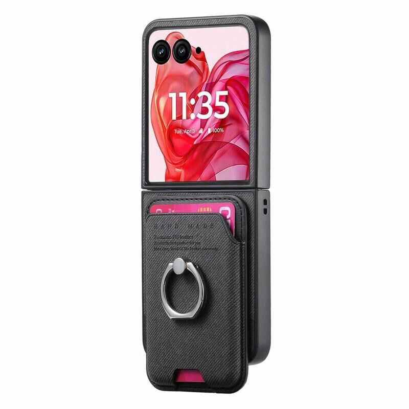 Θήκη Motorola Moto Razr 50 Ultra με υφασμάτινη κάρτα, δακτύλιο & μαγνήτη (Μαύρο)