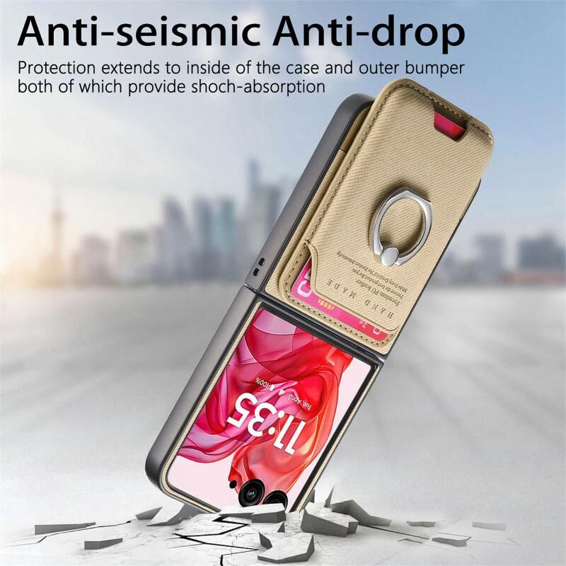 Θήκη Motorola Moto Razr 50 Ultra με υφασμάτινη κάρτα, δακτύλιο & μαγνήτη (Χακί)