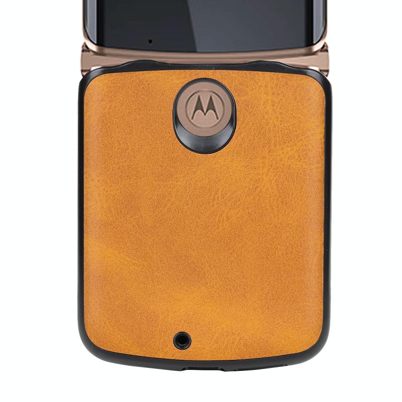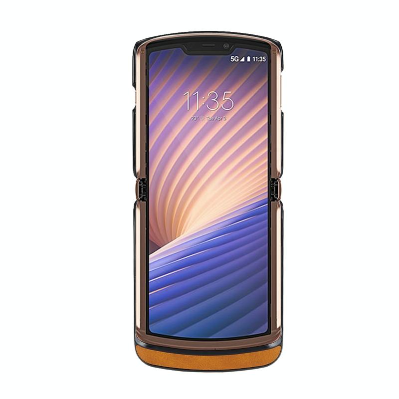 Θήκη προστασίας από δέρμα κορυφαίας ποιότητας με υφή δερμάτινου μοσχαριού δύο χρωμάτων για Motorola Moto Razr 5G (Καφέ)