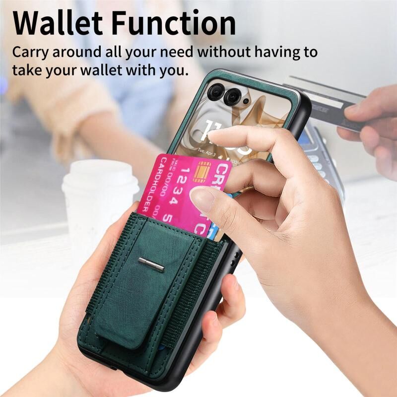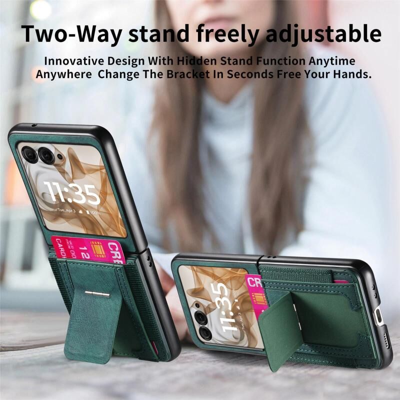 Θήκη τηλεφώνου Motorola Moto Razr 60 από αναδρομικό δέρμα με βάση στήριξης, ελαστική τσέπη για κάρτες (πράσινο)