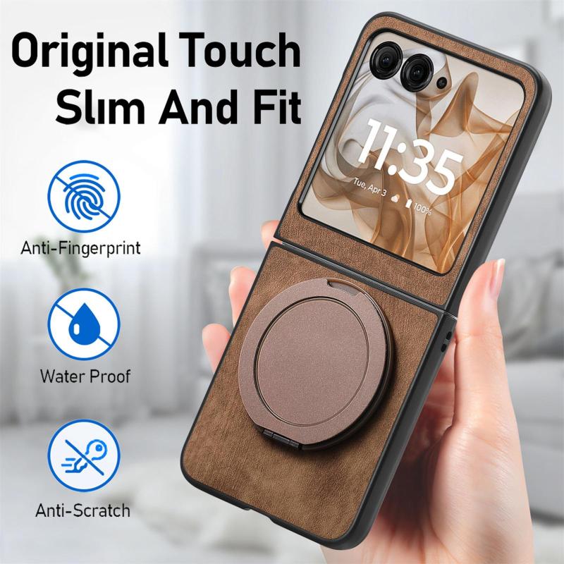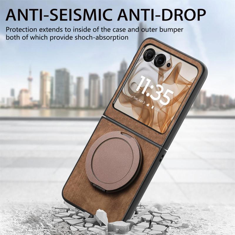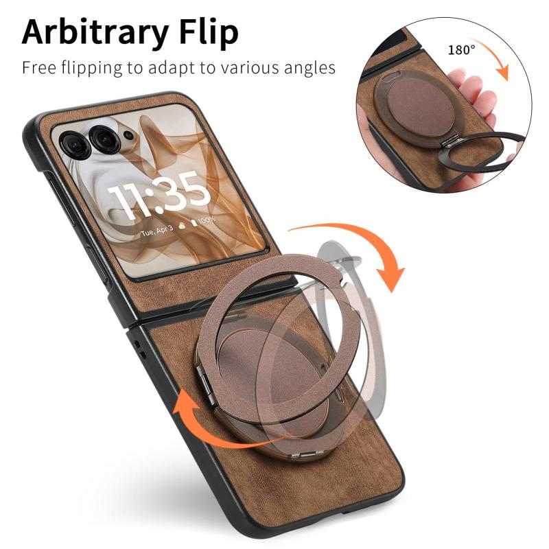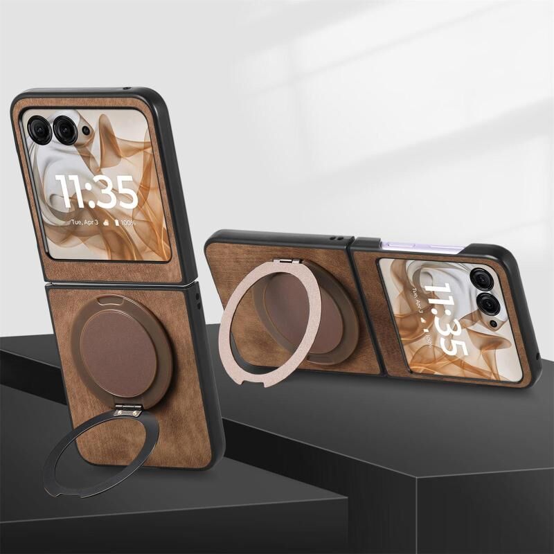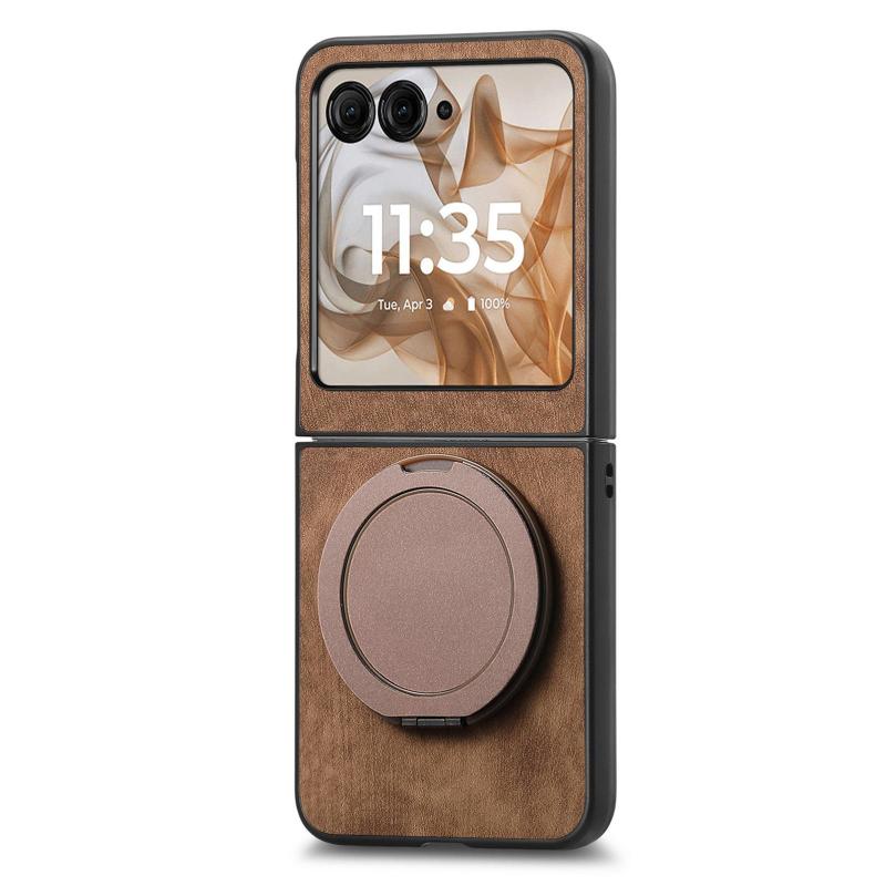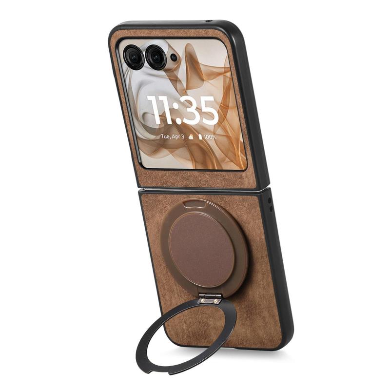 Για Motorola Moto Razr 60 Δερμάτινη Θήκη με Περιστρεφόμενη Βάση (Καφέ)