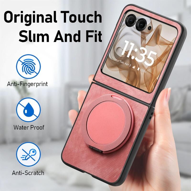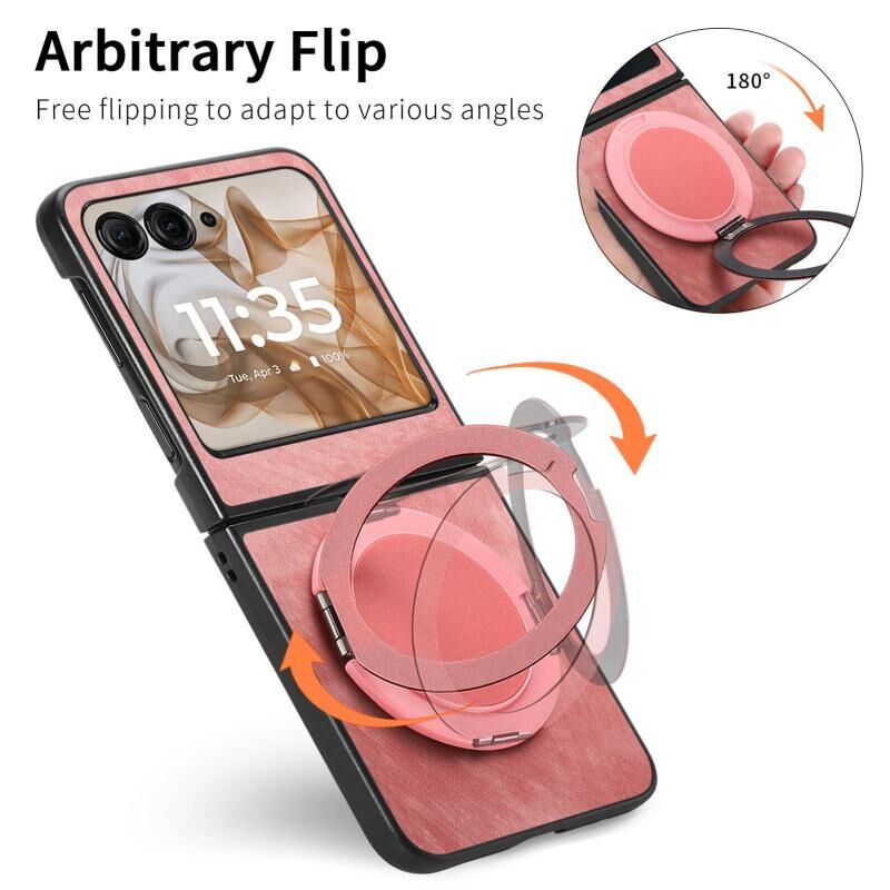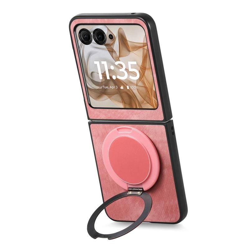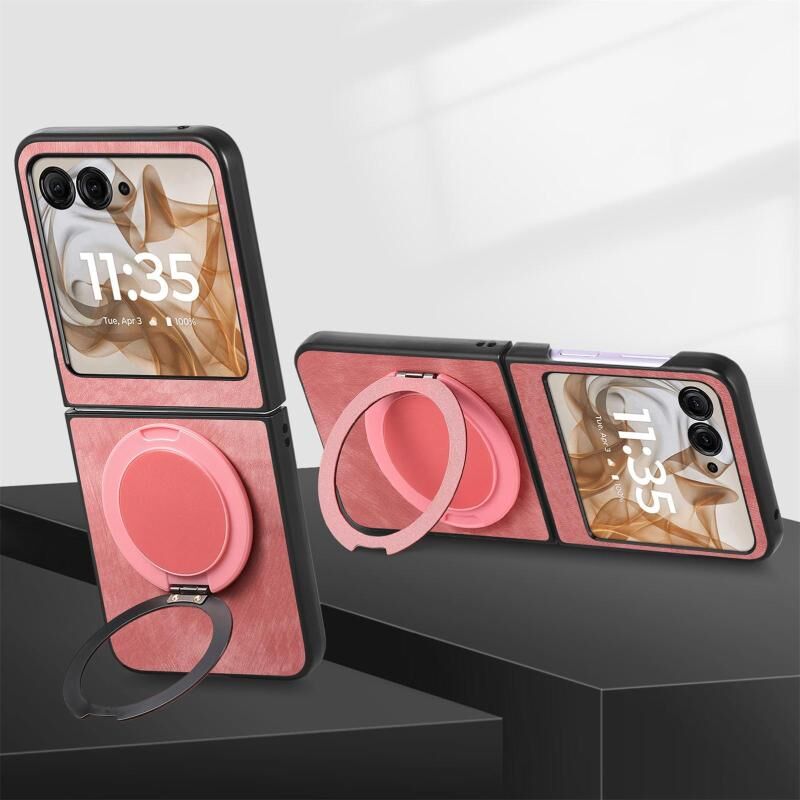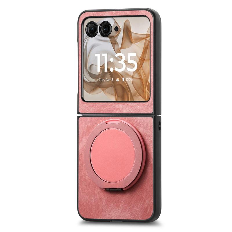 Για Motorola Moto Razr 60 Δερμάτινη Θήκη με Περιστρεφόμενη Βάση (Ροζ)