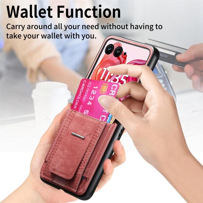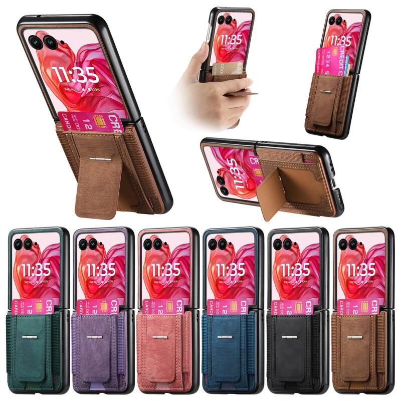 Θήκη τηλεφώνου Motorola Moto Razr 60 Ultra από αναδρομικό δέρμα με βάση στήριξης, ελαστική τσέπη για κάρτες (Μαύρο)