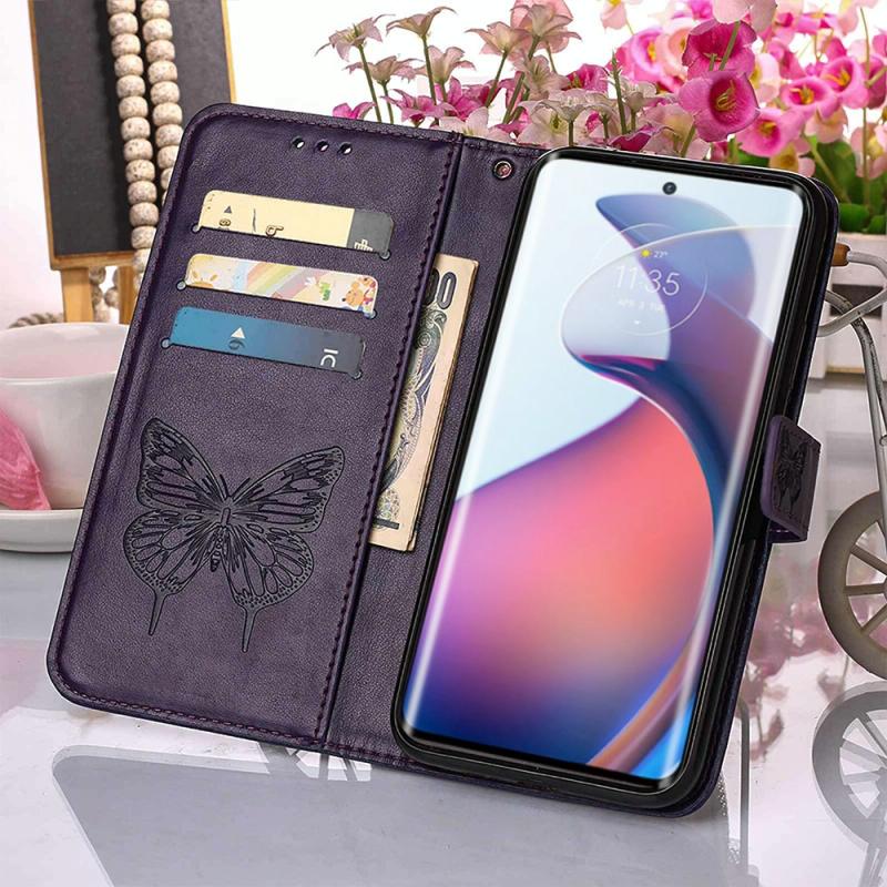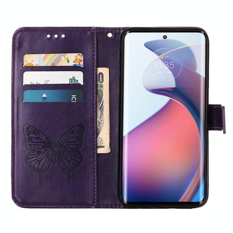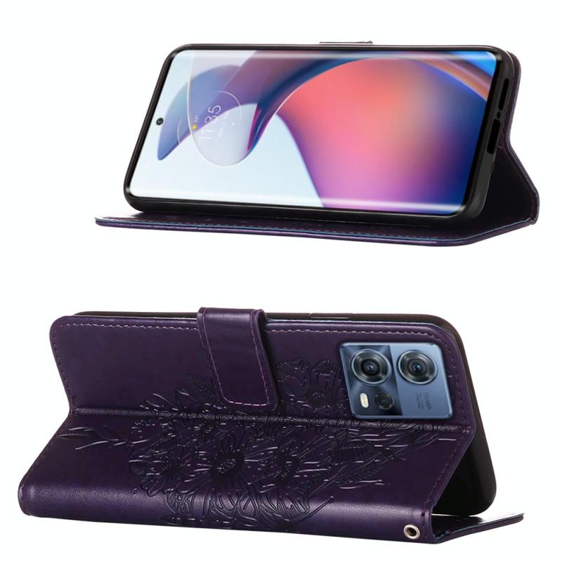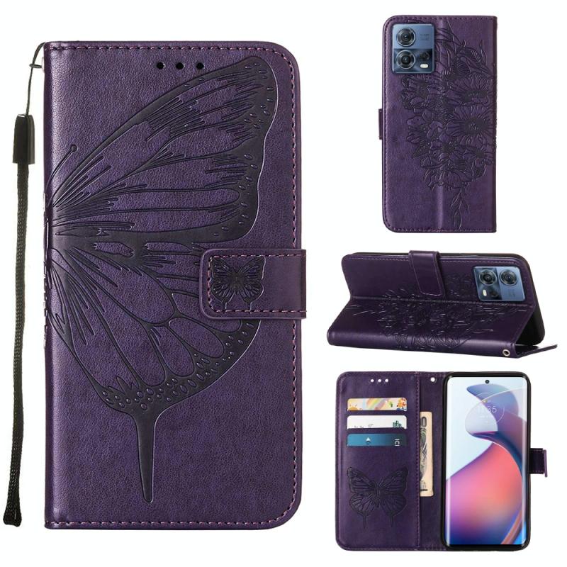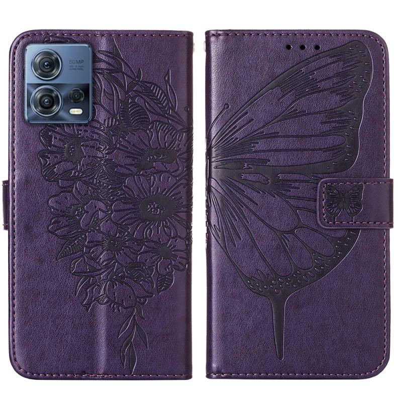 For Motorola Moto S30 Pro 5G Embossed Butterfly Flip Leather Phone Case(Dark Purple)