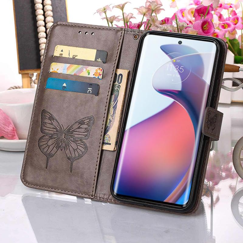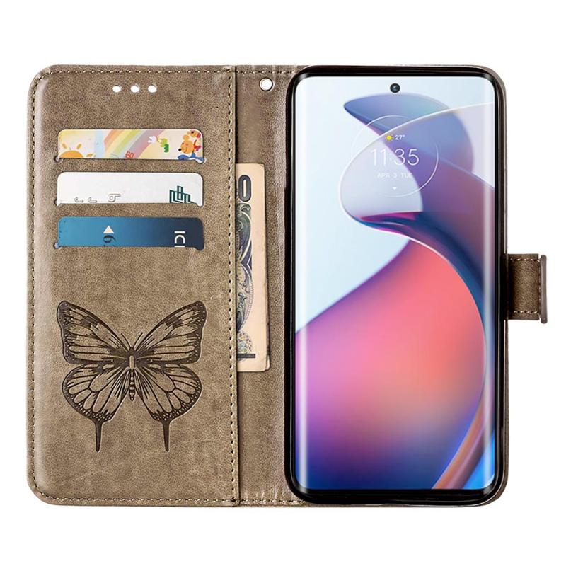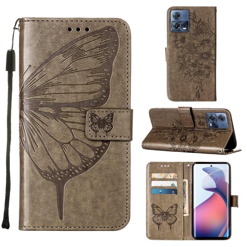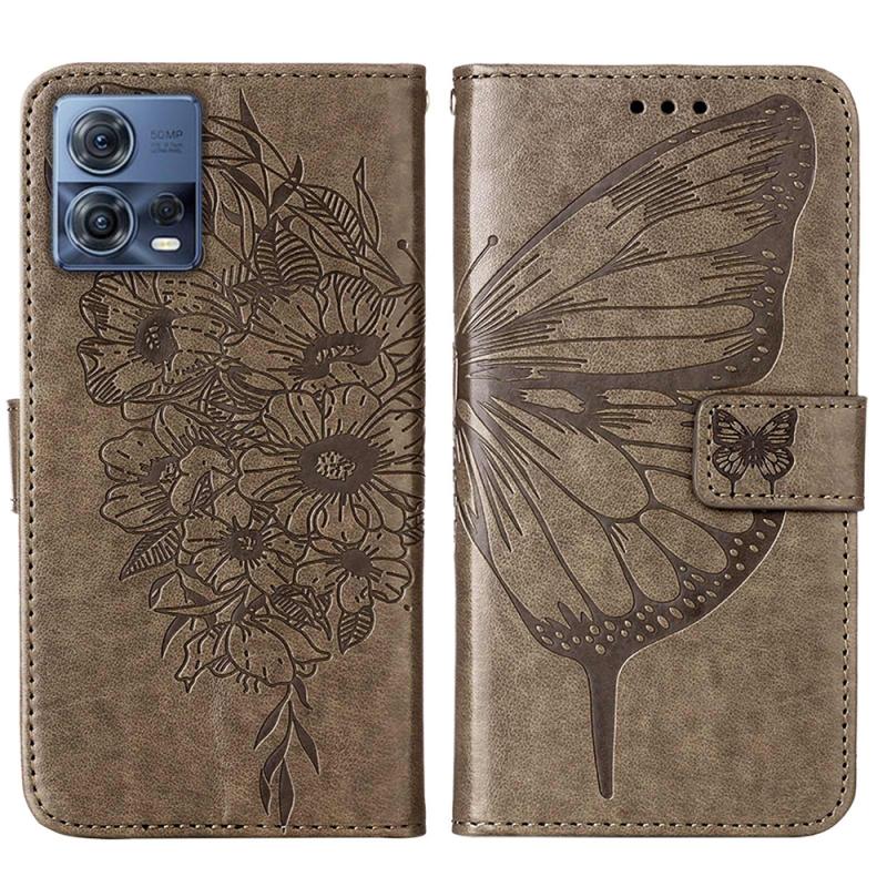 For Motorola Moto S30 Pro 5G Embossed Butterfly Flip Leather Phone Case(Grey)